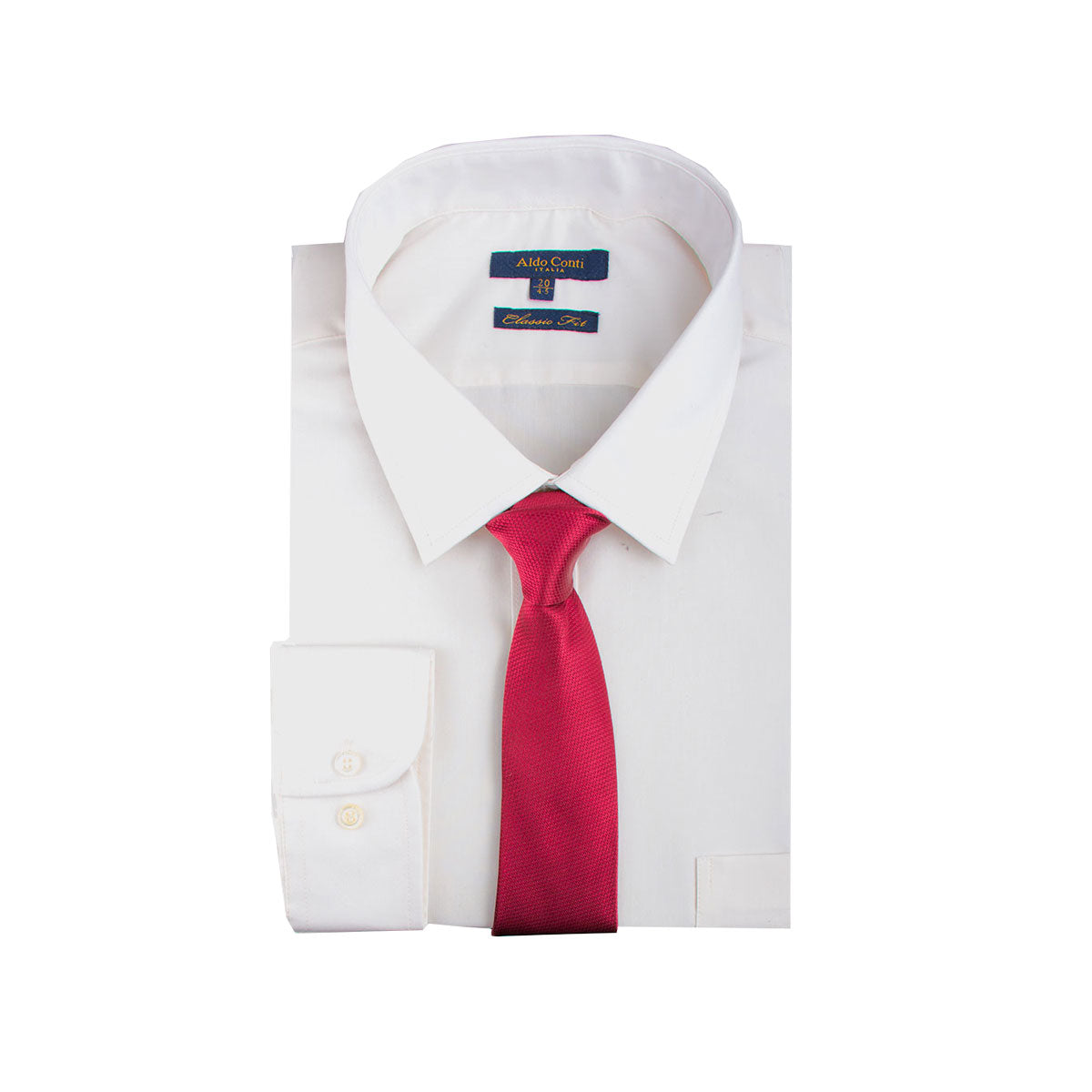 Camisa color hueso, corte Classic Fit, con cierre de botonadura y manga larga, terminada en puño y bolsillo a la altura del pecho.