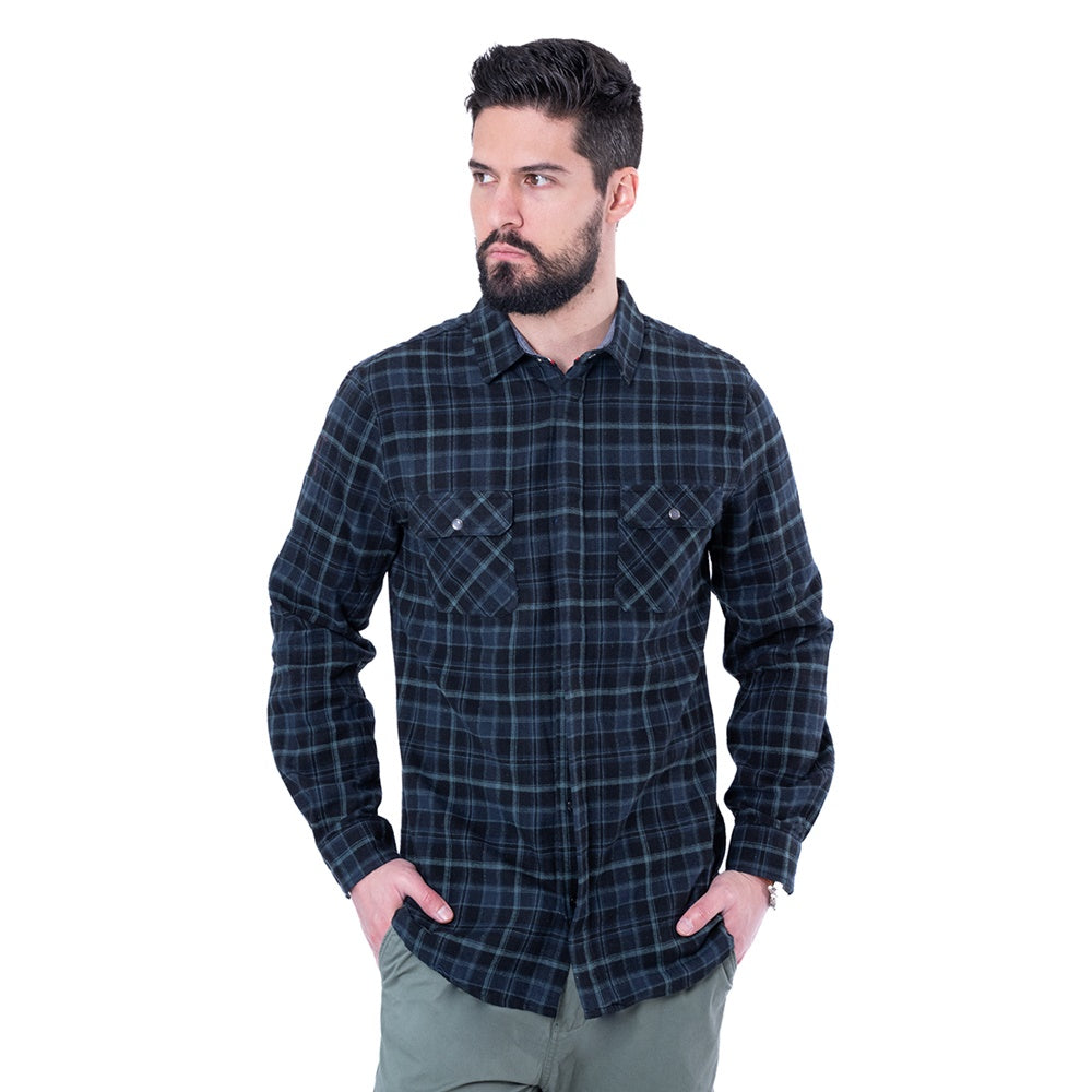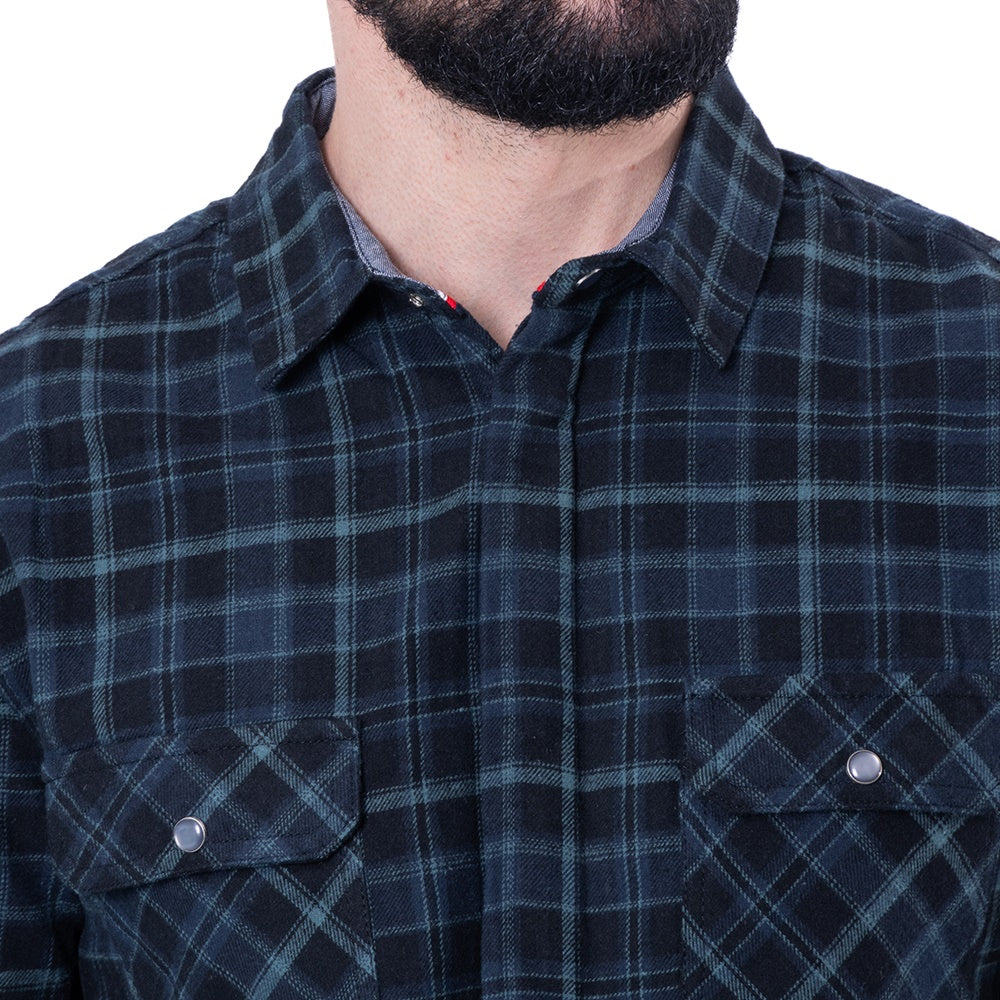 Camisa de franela corte Slim Fit en color verde, diseño cuadriculado.
