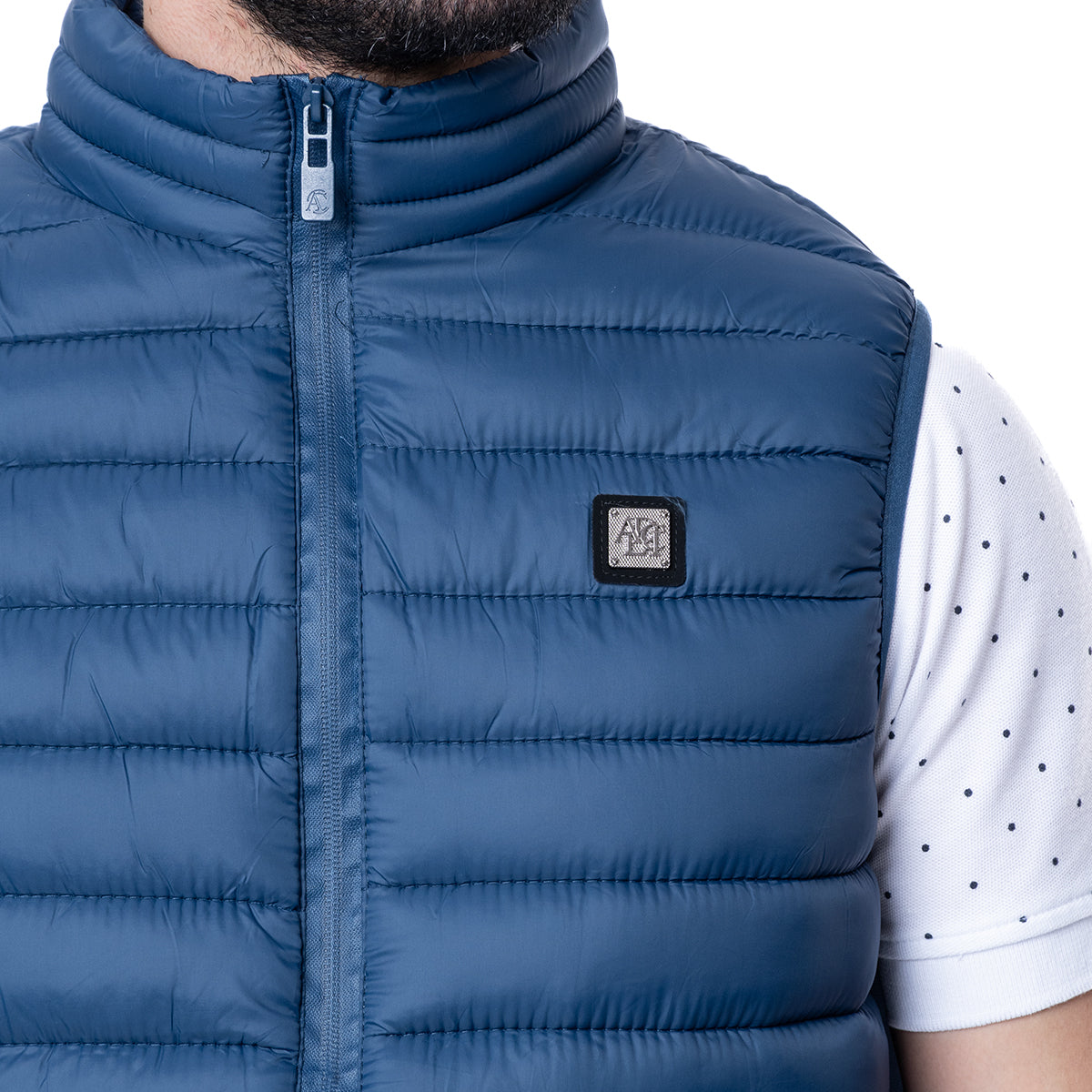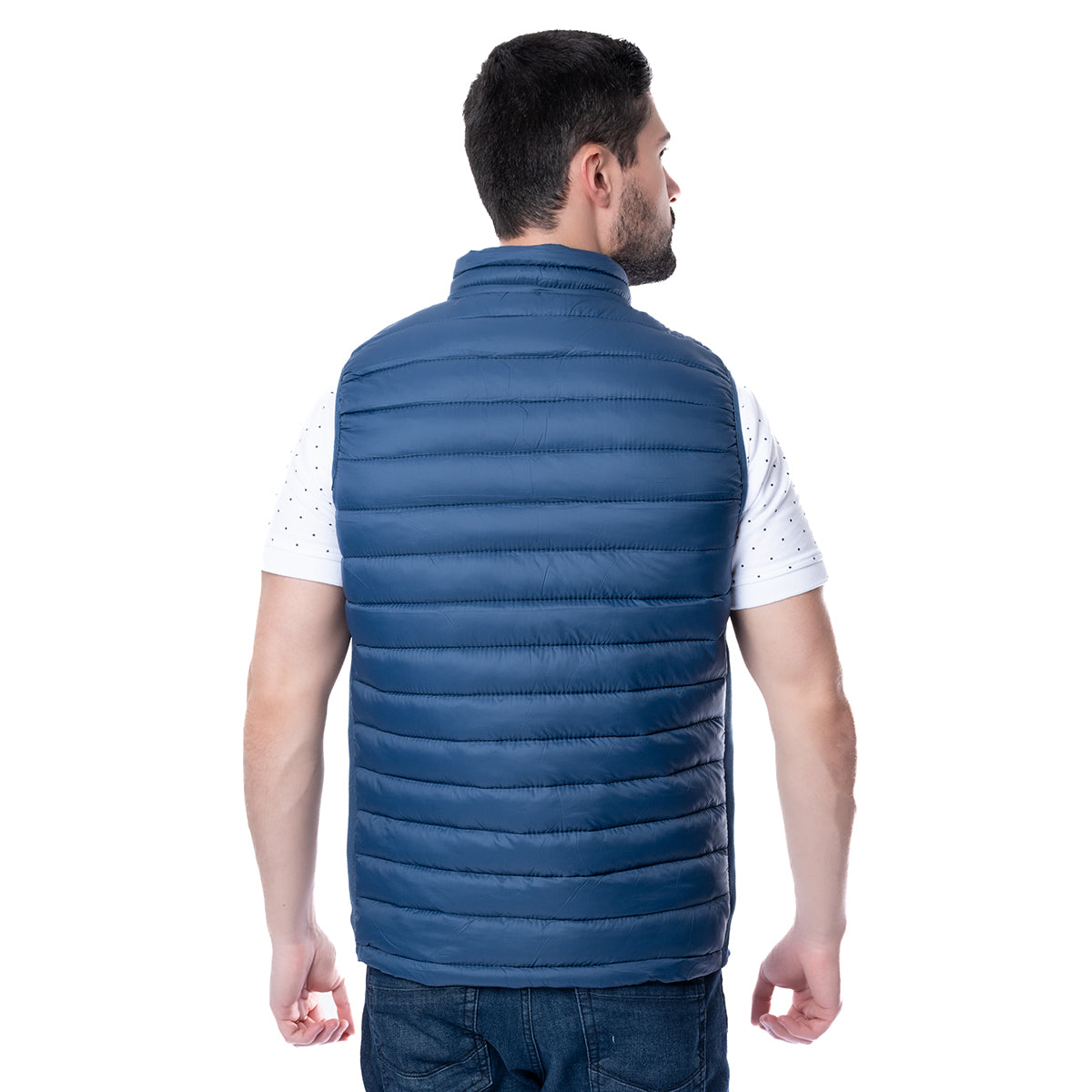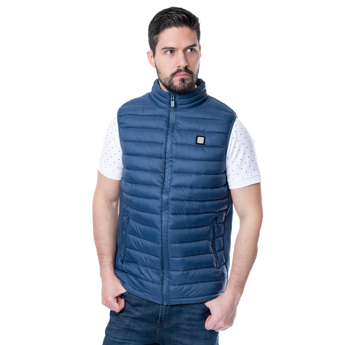 Chaleco azul capitonado con cierre de cremallera y bolsillos laterales. Corte Casual Fit para mayor comodidad. La mejor opción para complementar tu outfit de temporada.