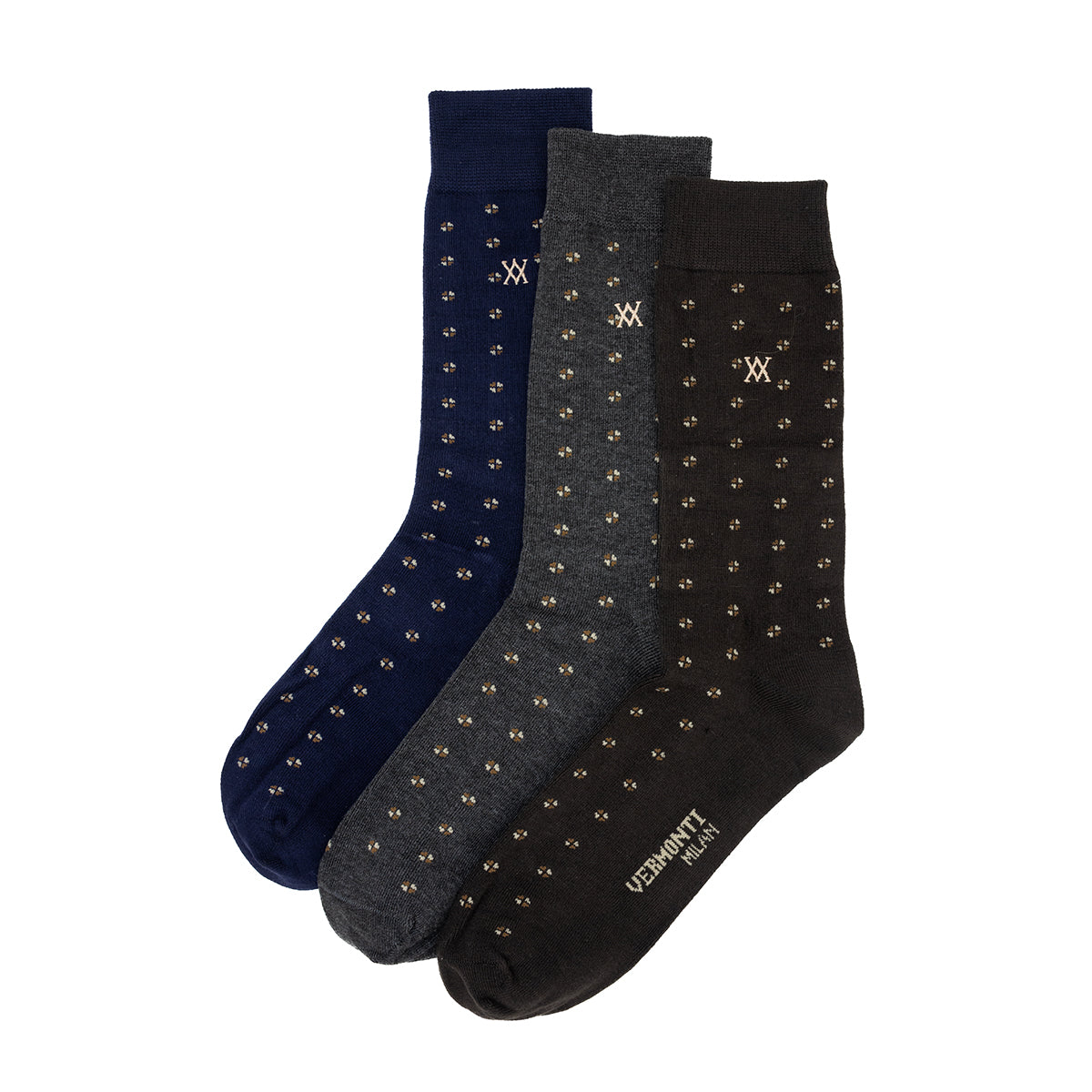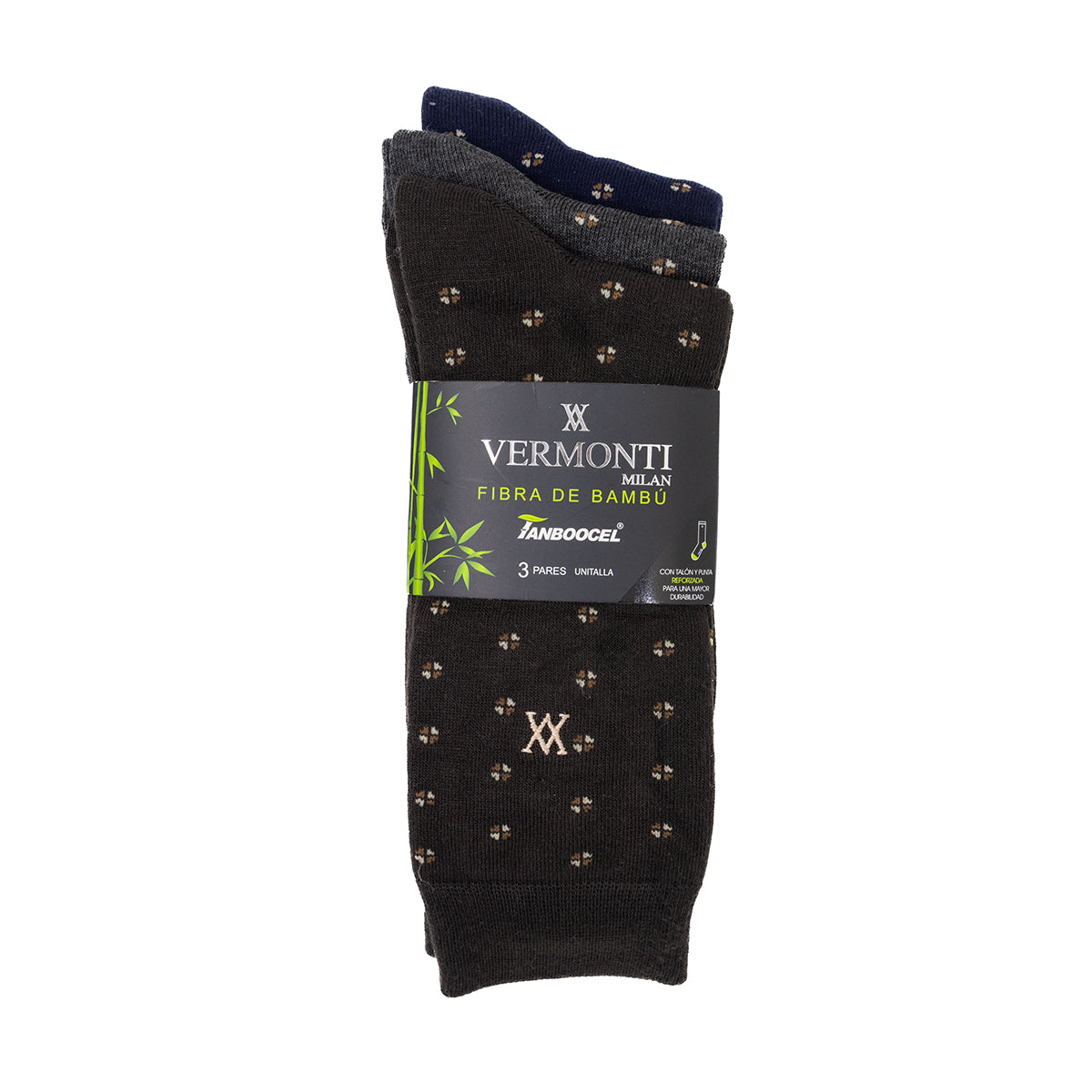 Set de 3 pares de calcetines largos de fibra de bambú en diseño liso con patrón.