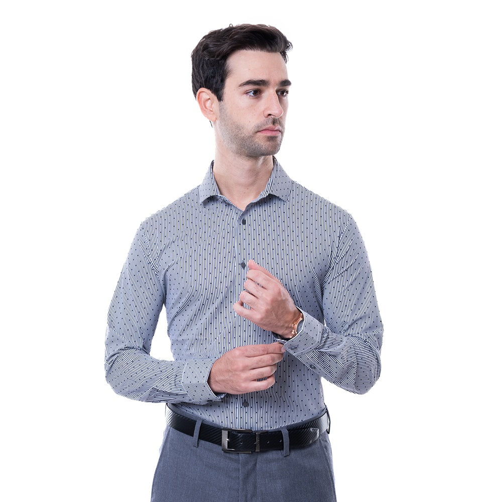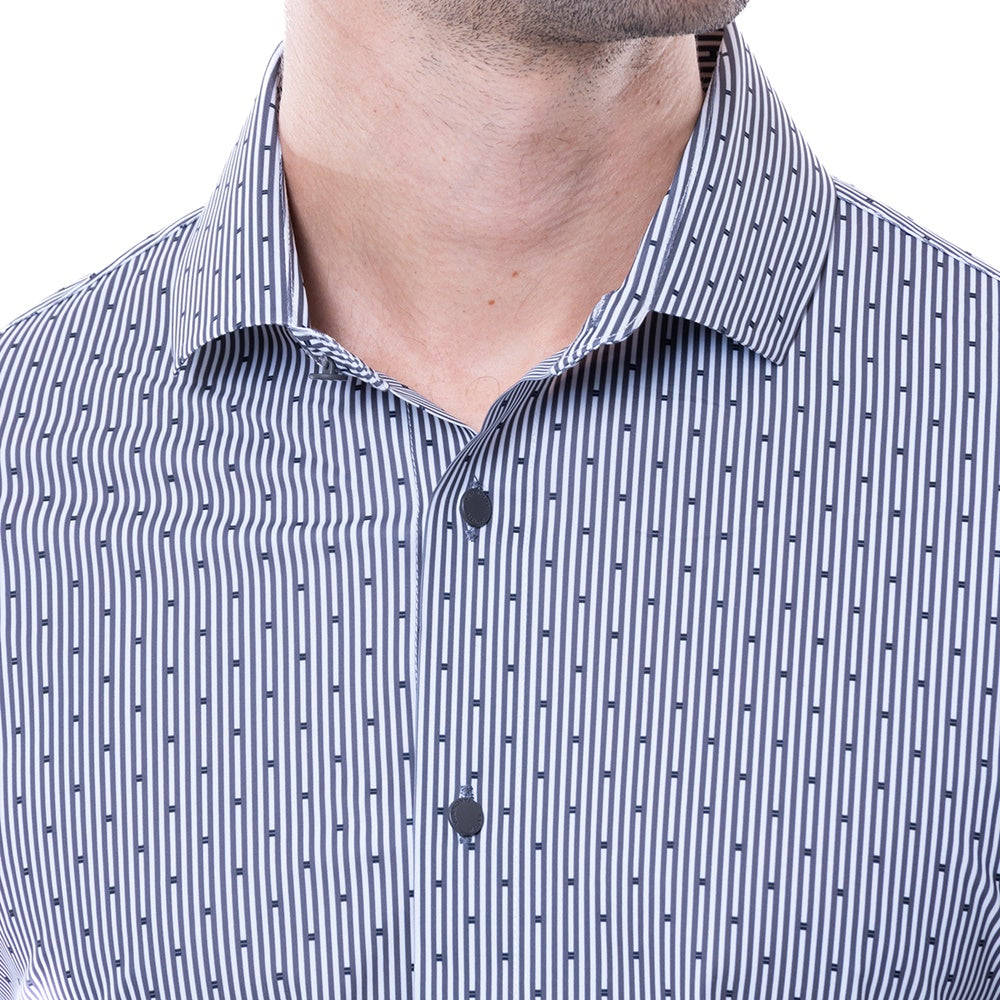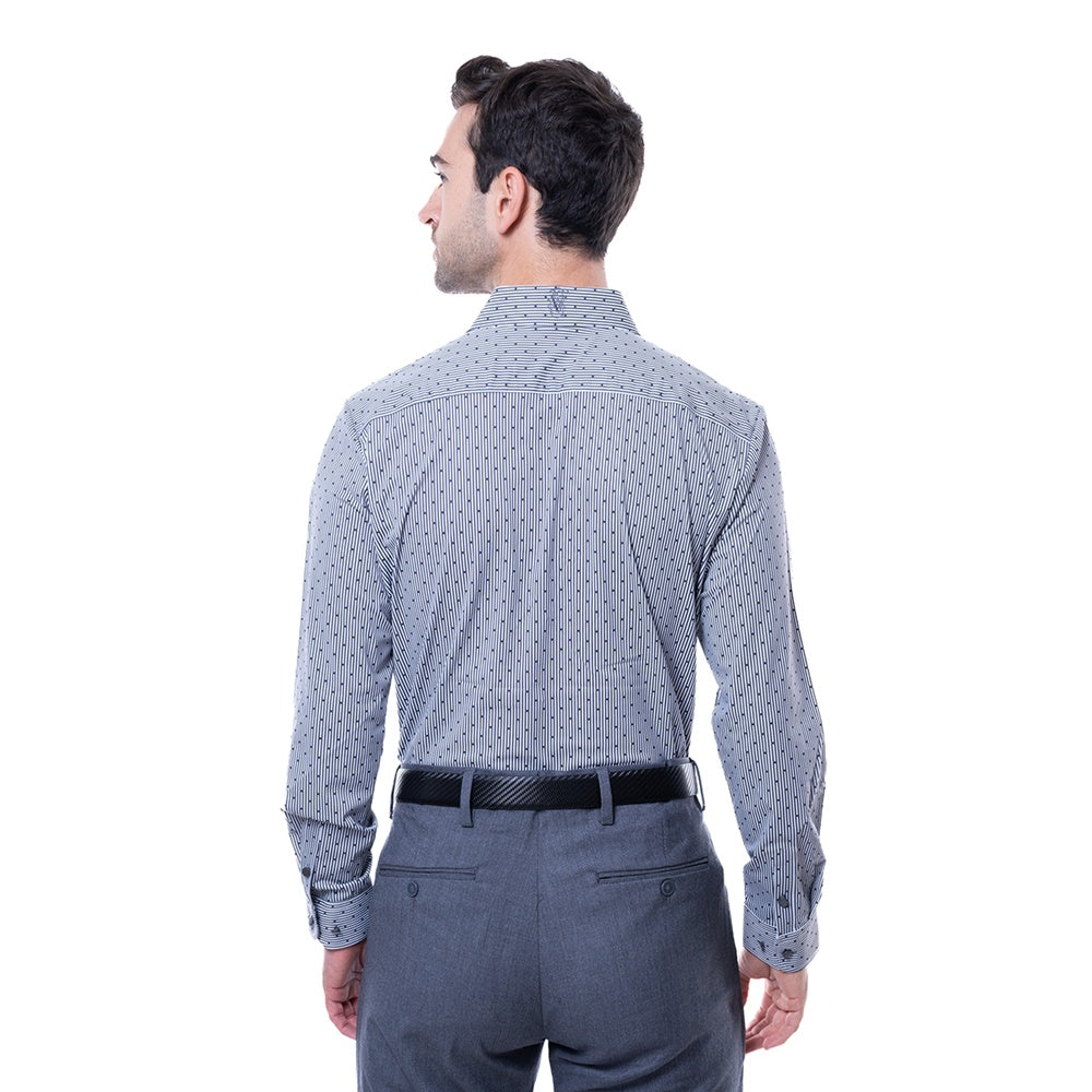 Camisa Stretch corte Slim Fit en color gris y diseño rayado con patrones.