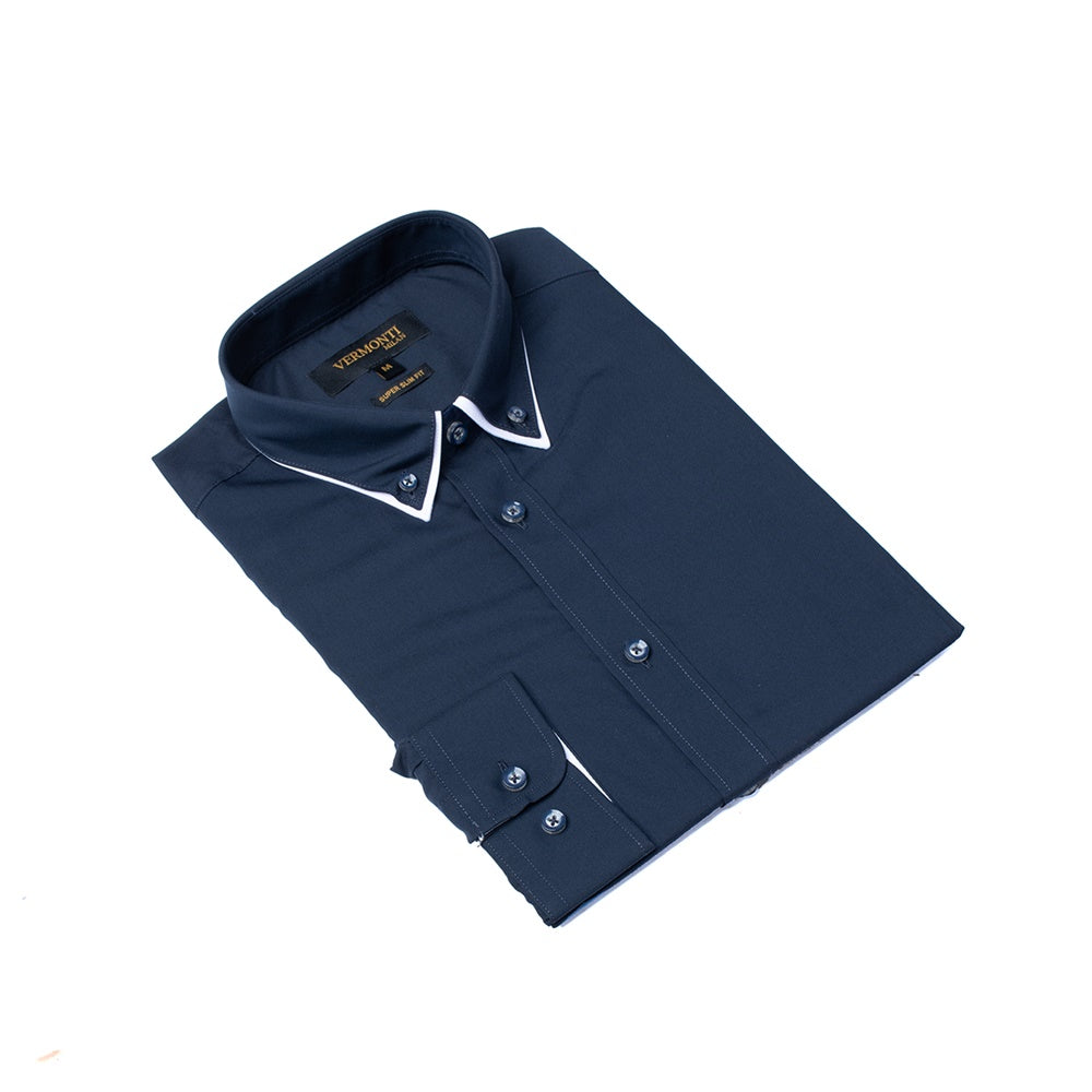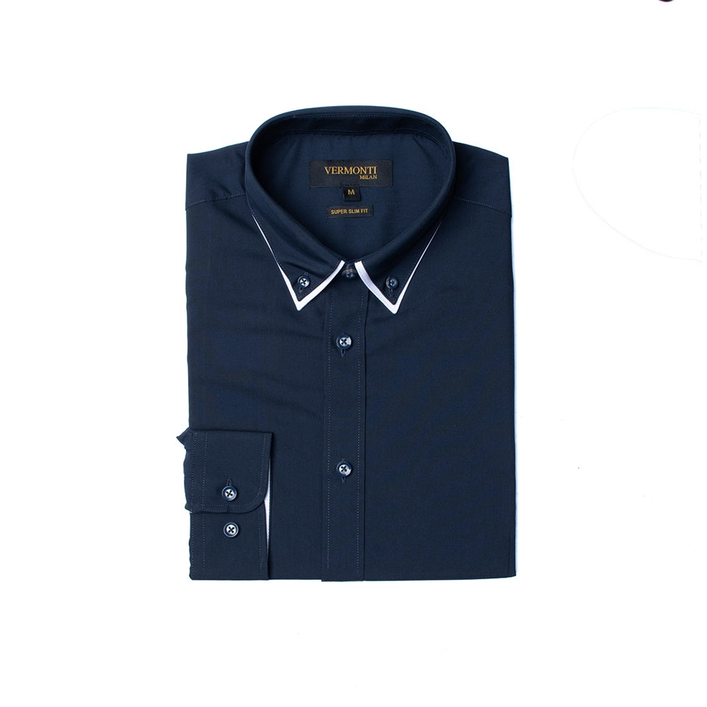 Camisa super Slim Fit en color marino y diseño liso.