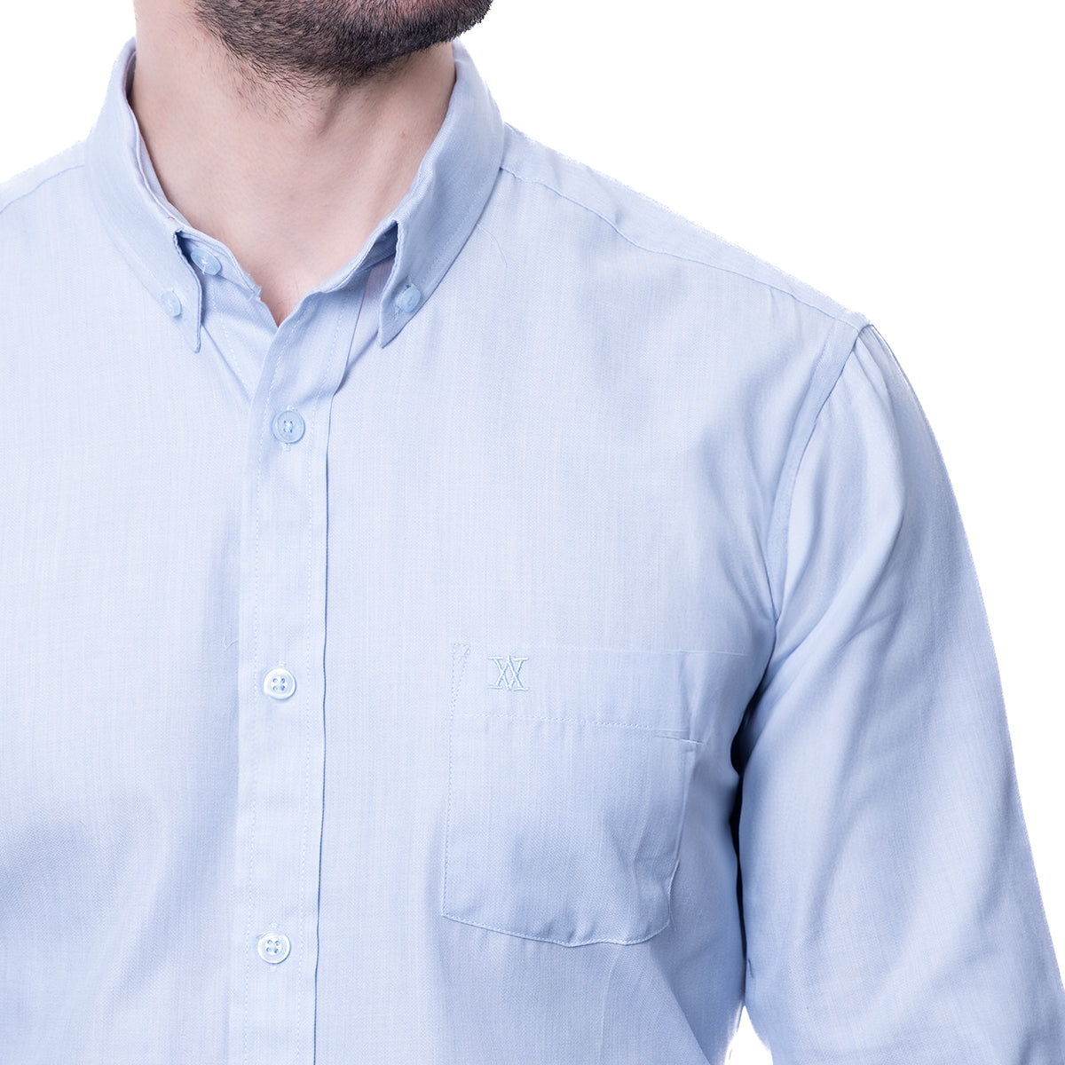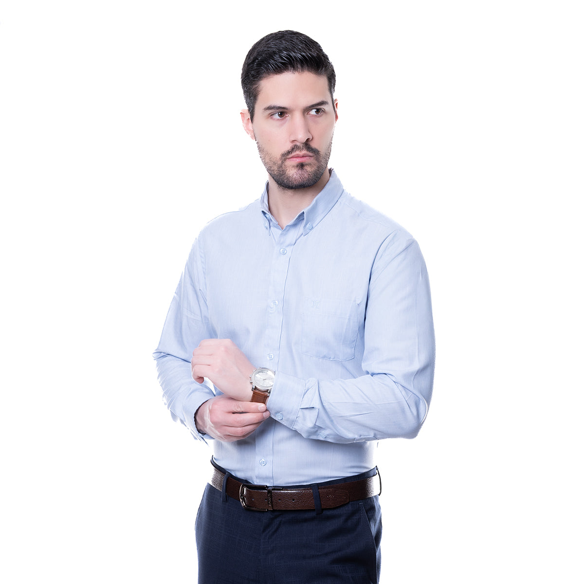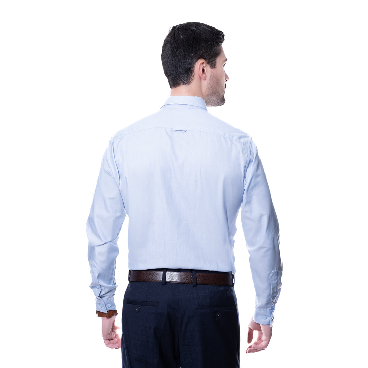 Camisa corte Slim Fit color cielo con diseño liso, cuello italiano, botonadura clásica al frente y manga larga. Con el corte SLIM FIT tendrás un atuendo cómodo, dándote la libertad con un estilo semi ajustado.