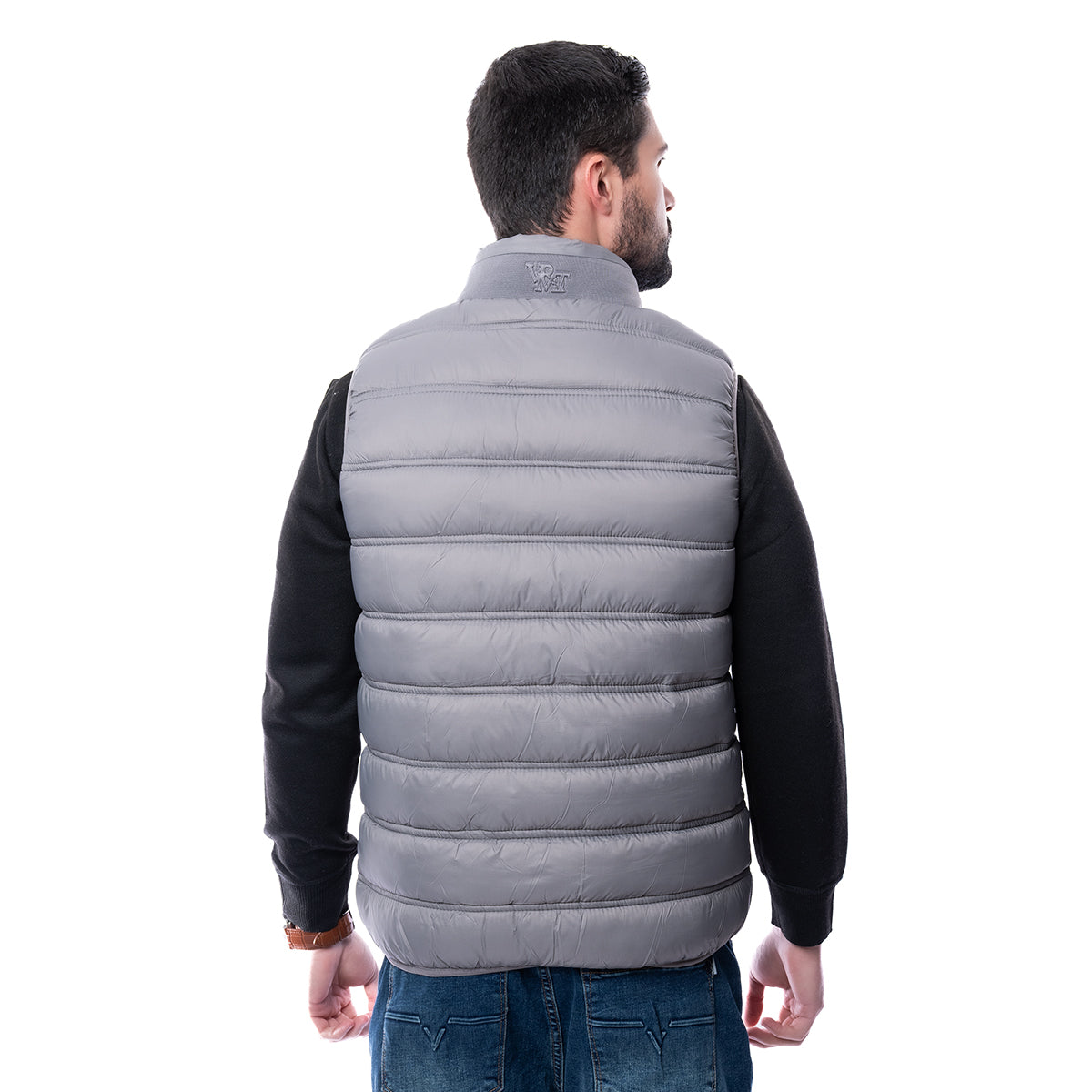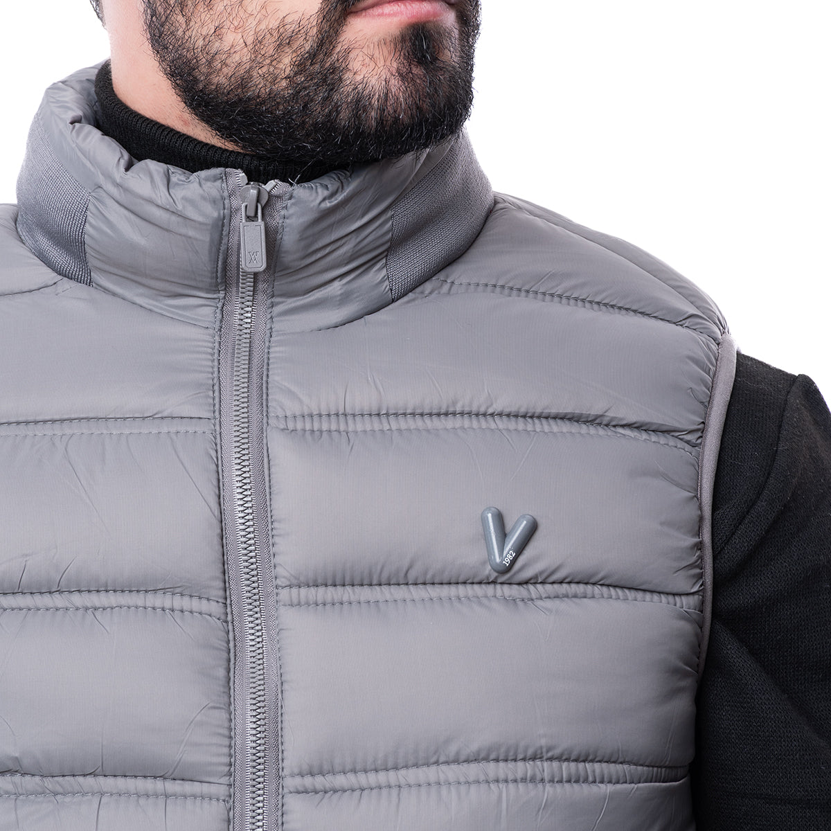 Chaleco acolchado en color gris con cierre de cremallera y bolsillos laterales.