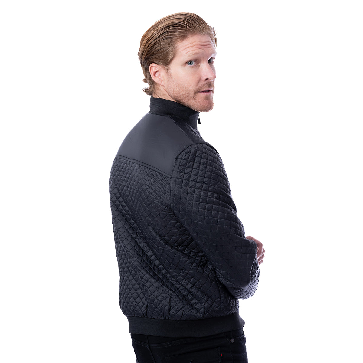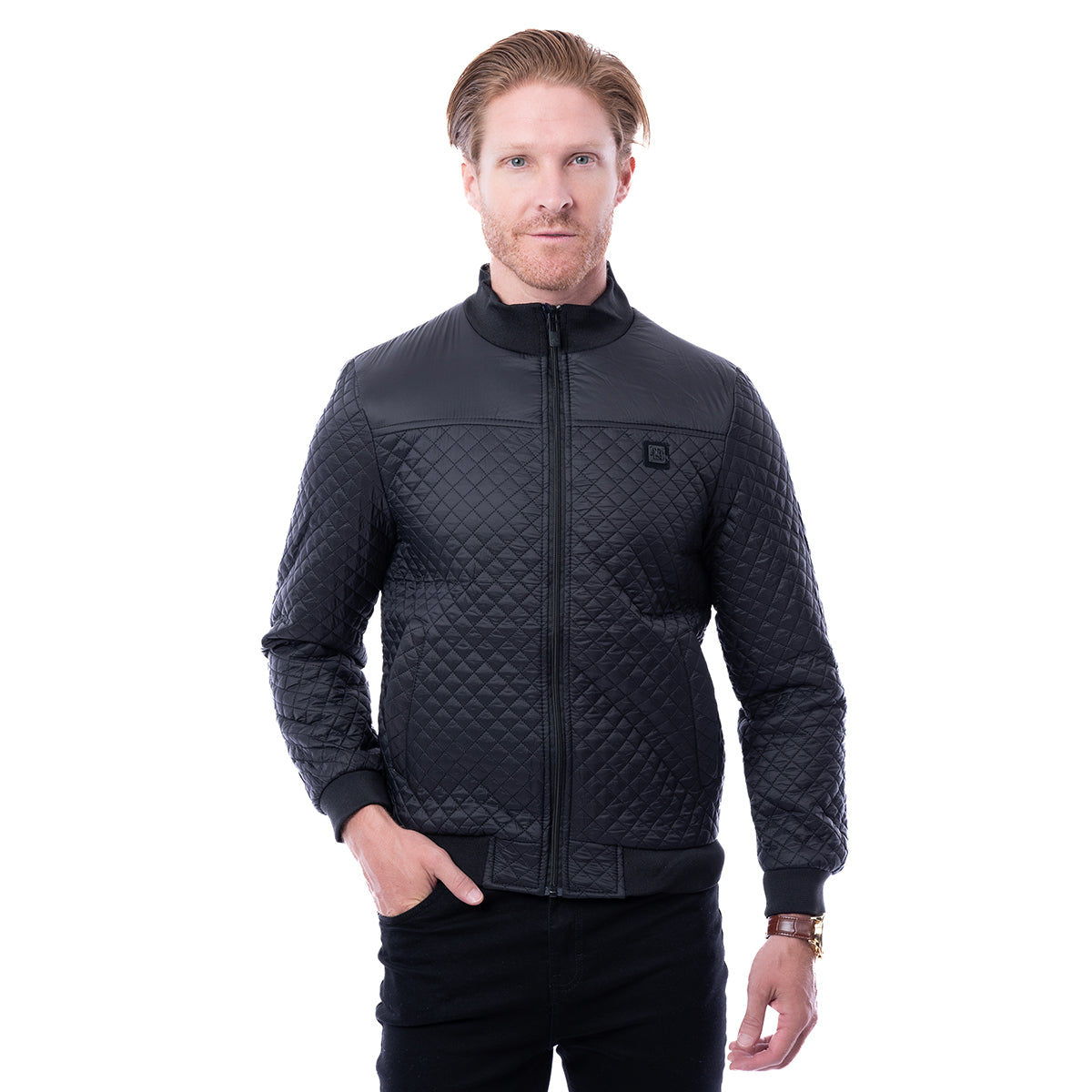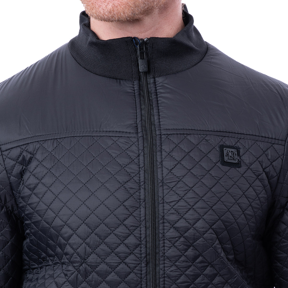 Chamarra capitonada en color negro con diseño liso y cierre de cremallera.