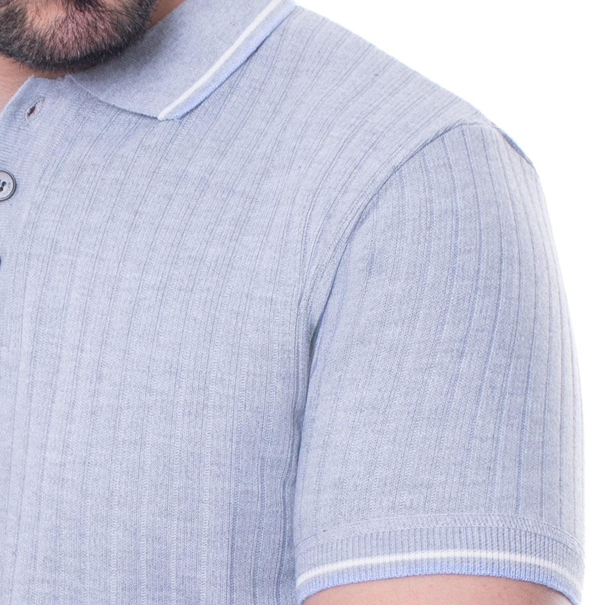 Polo para hombre de manga corta en corte slim fit y tono gris, con diseño liso. El cuello tejido con contraste y los puños tejidos con contraste aportan un acabado más refinado para elevar tus looks casuales. Acabado limpio, sin logotipo visible.