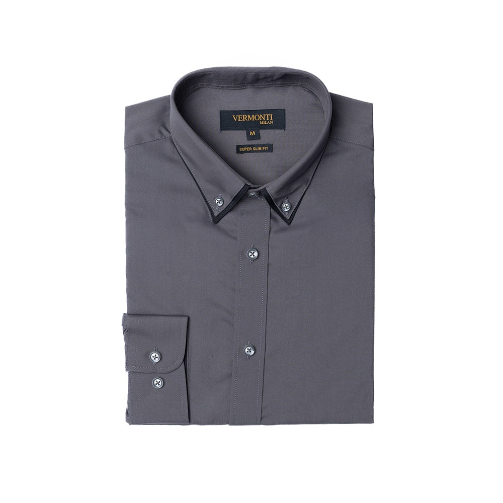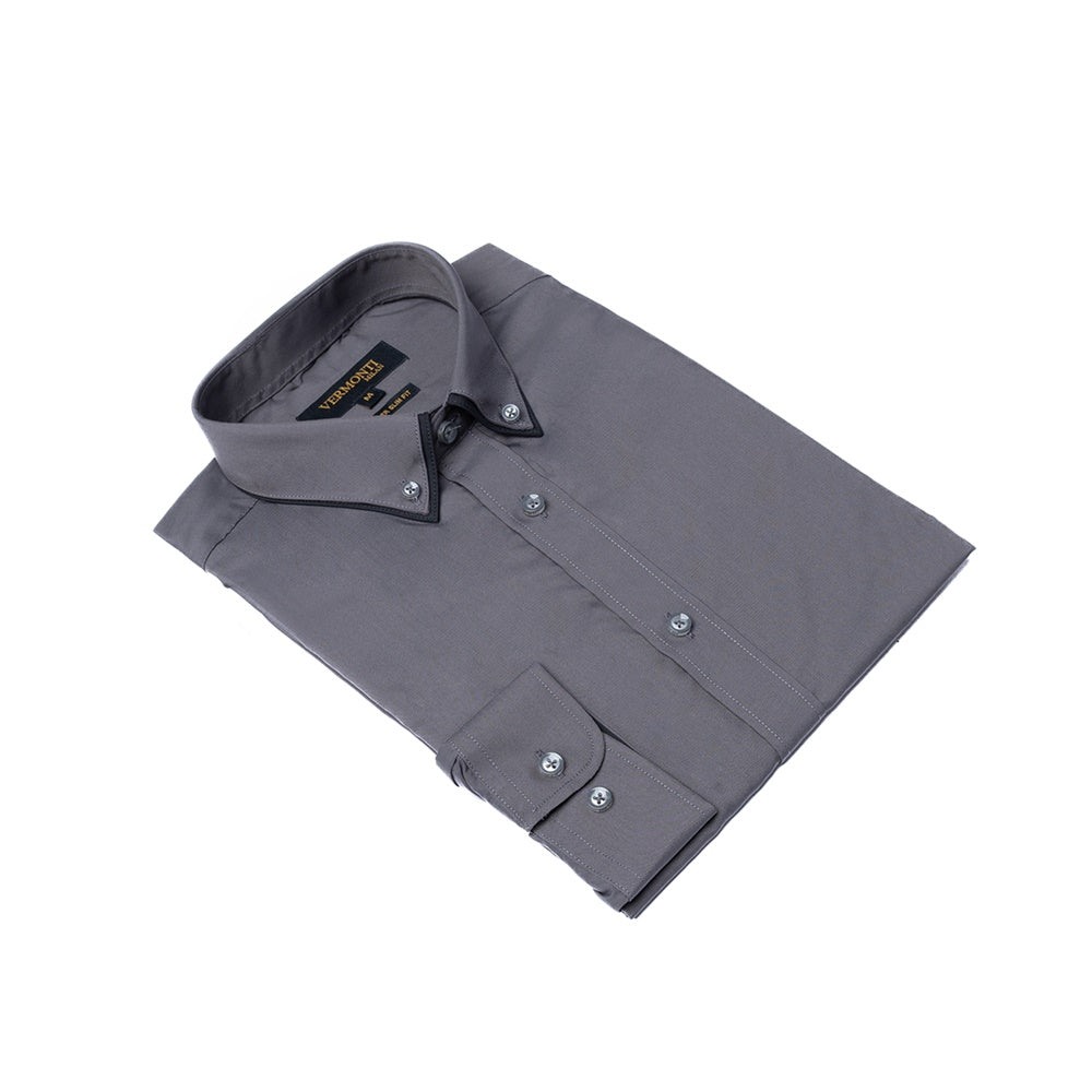 Cuello button down, cierre frontal de botonadura y manga larga.
