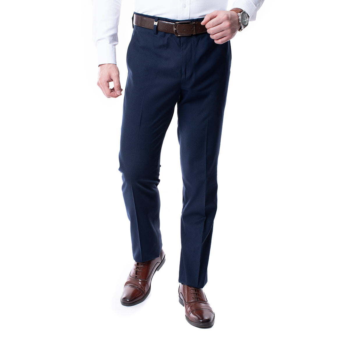 Pantalón corte Slim Fit azul con diseño liso, bolsillos traseros y delanteros. Con el corte SLIM FIT tendrás un atuendo cómodo, dándote la libertad con un estilo semi ajustado.