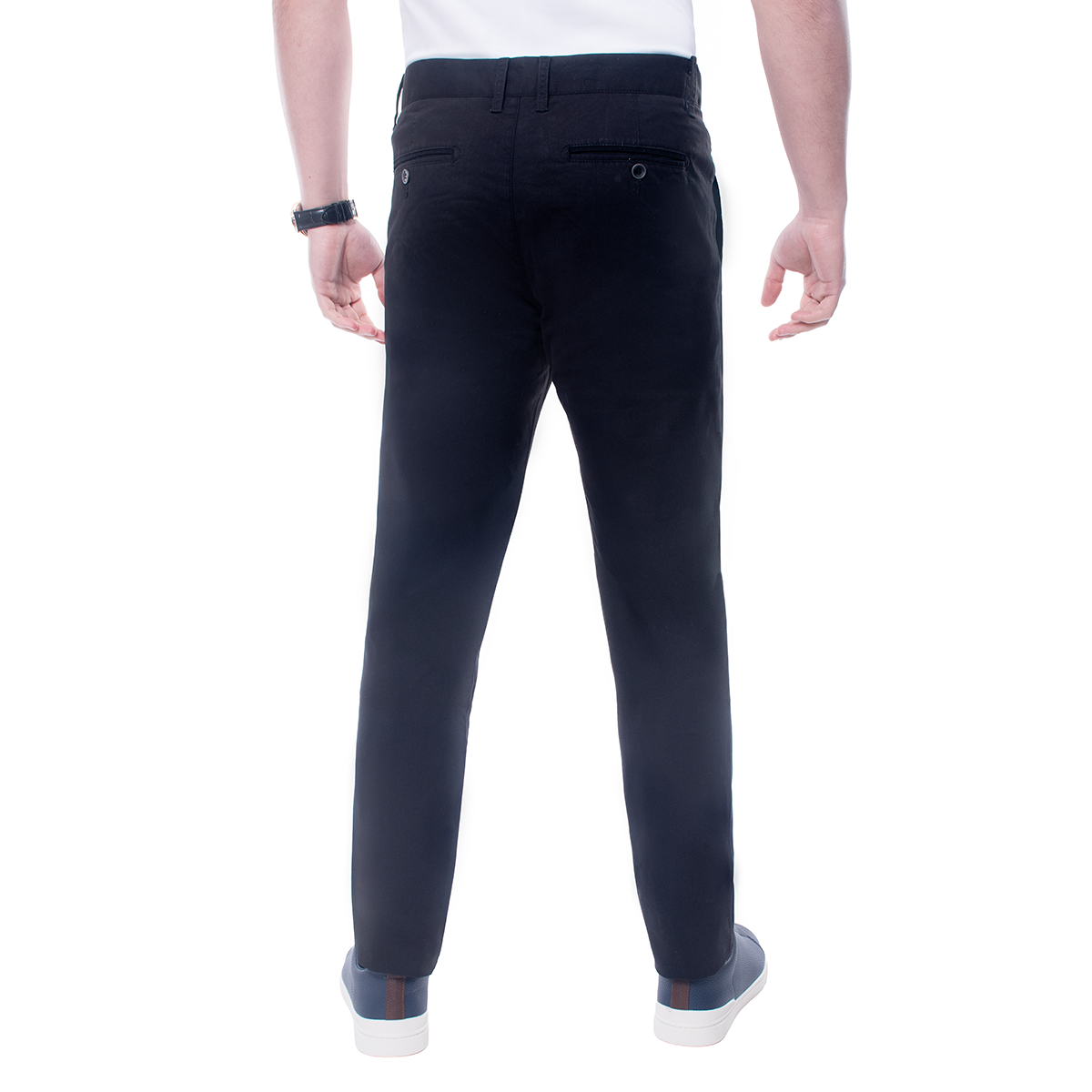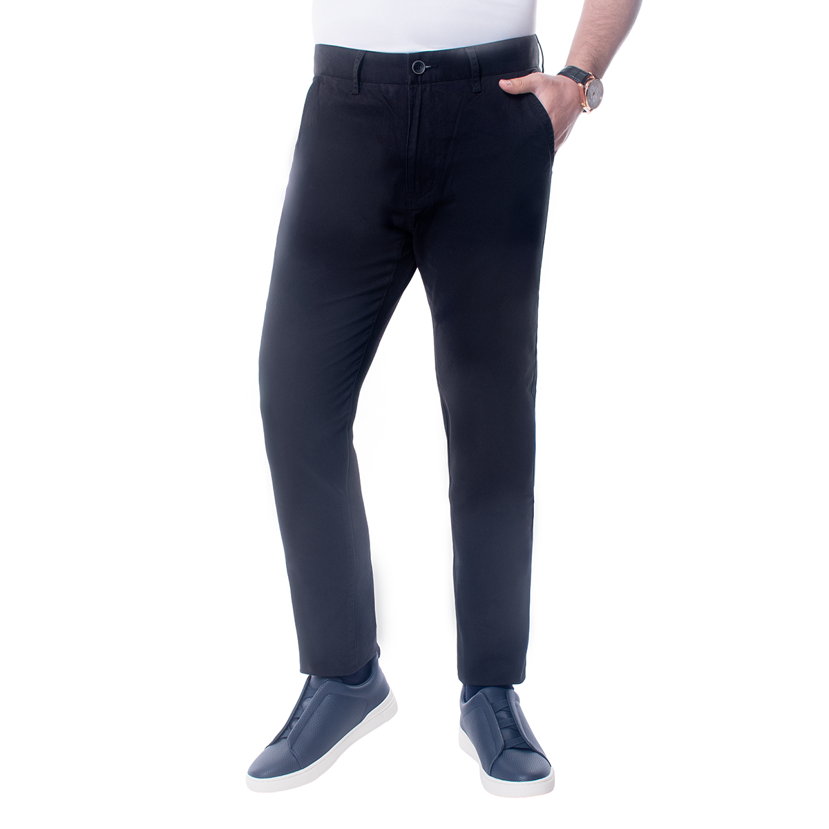 Pantalón para hombre en corte Skinny Fit, color negro y diseño liso, con bolsillos delanteros. Una base versátil para oficina y fin de semana, con una estética limpia y moderna.