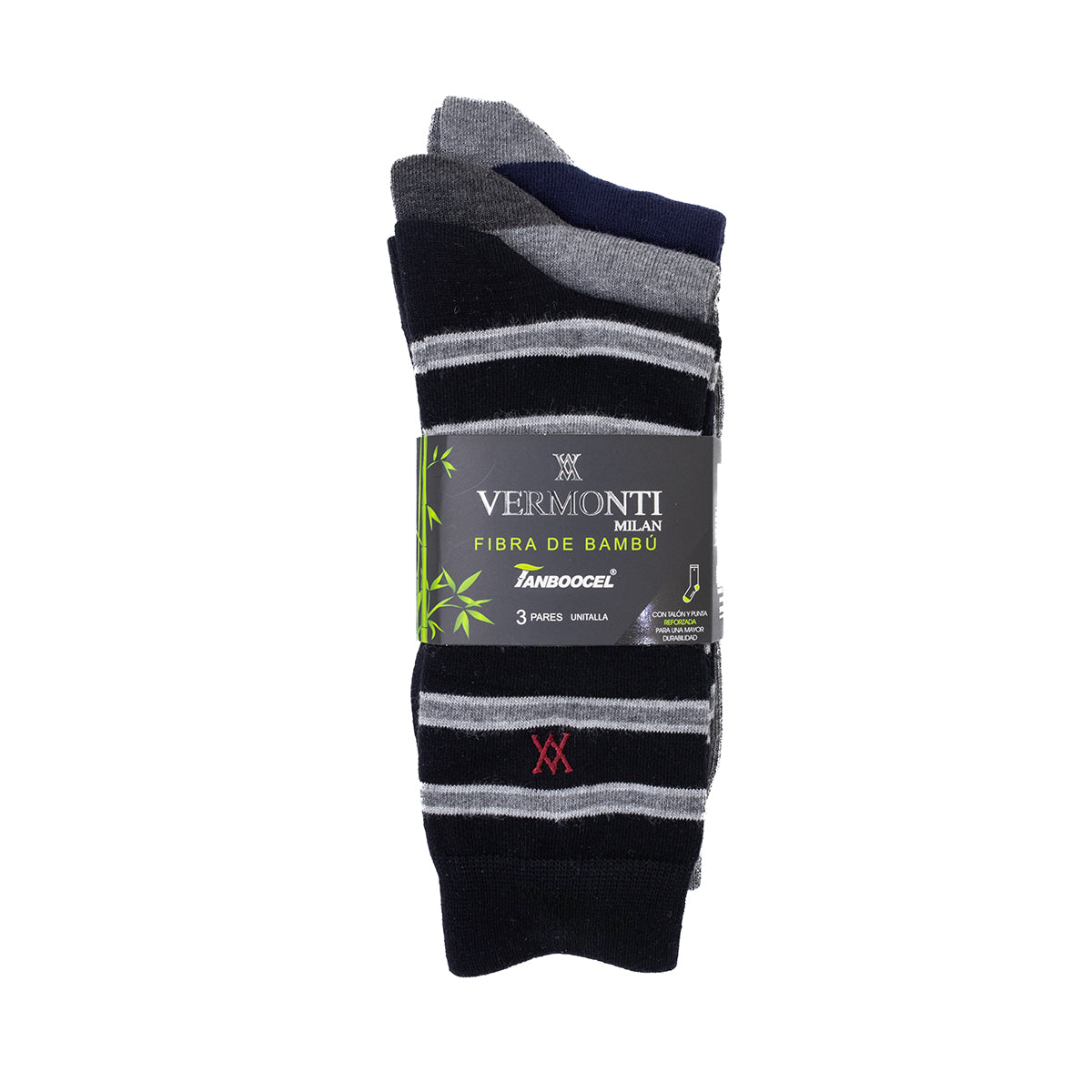 Set de 3 pares de calcetines largos de fibra de bambú en diseño rayado.