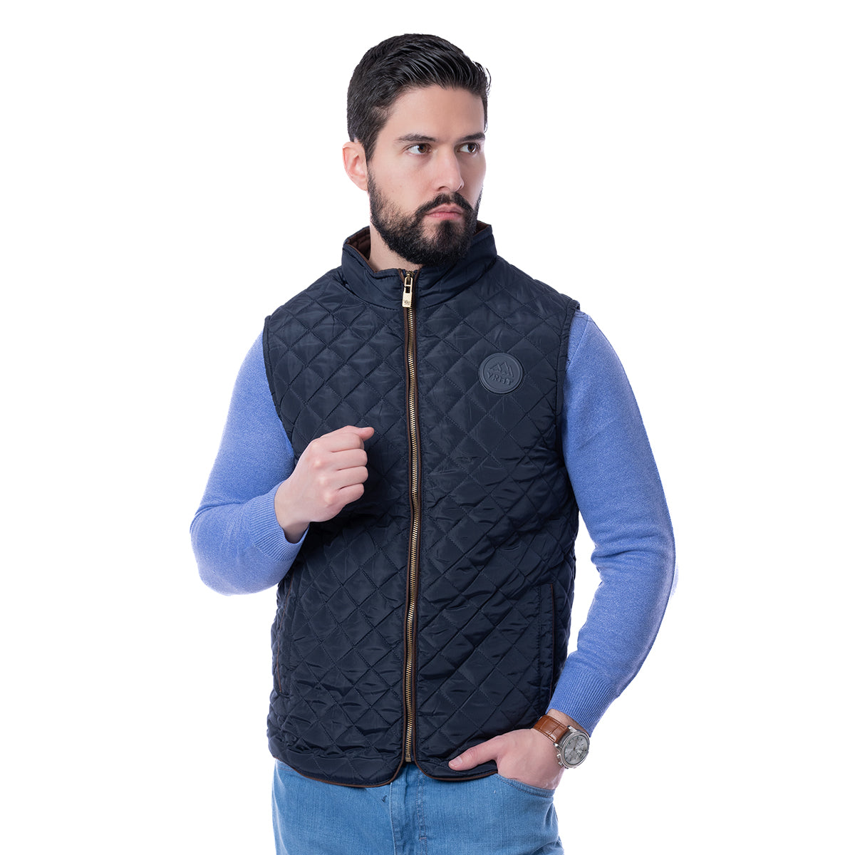 Chaleco corte Slim Fit capitonado marino con diseño liso, cierre de cremallera al frente y bolsillos laterales. Con el corte SLIM FIT tendrás un atuendo cómodo, dándote la libertad con un estilo semi ajustado.