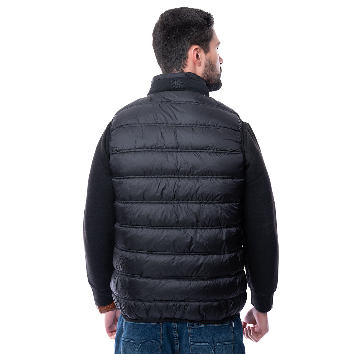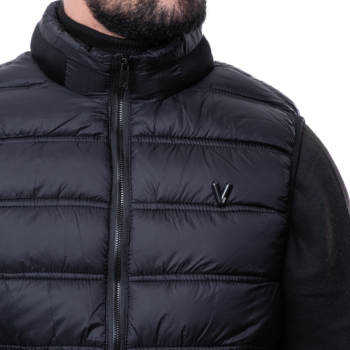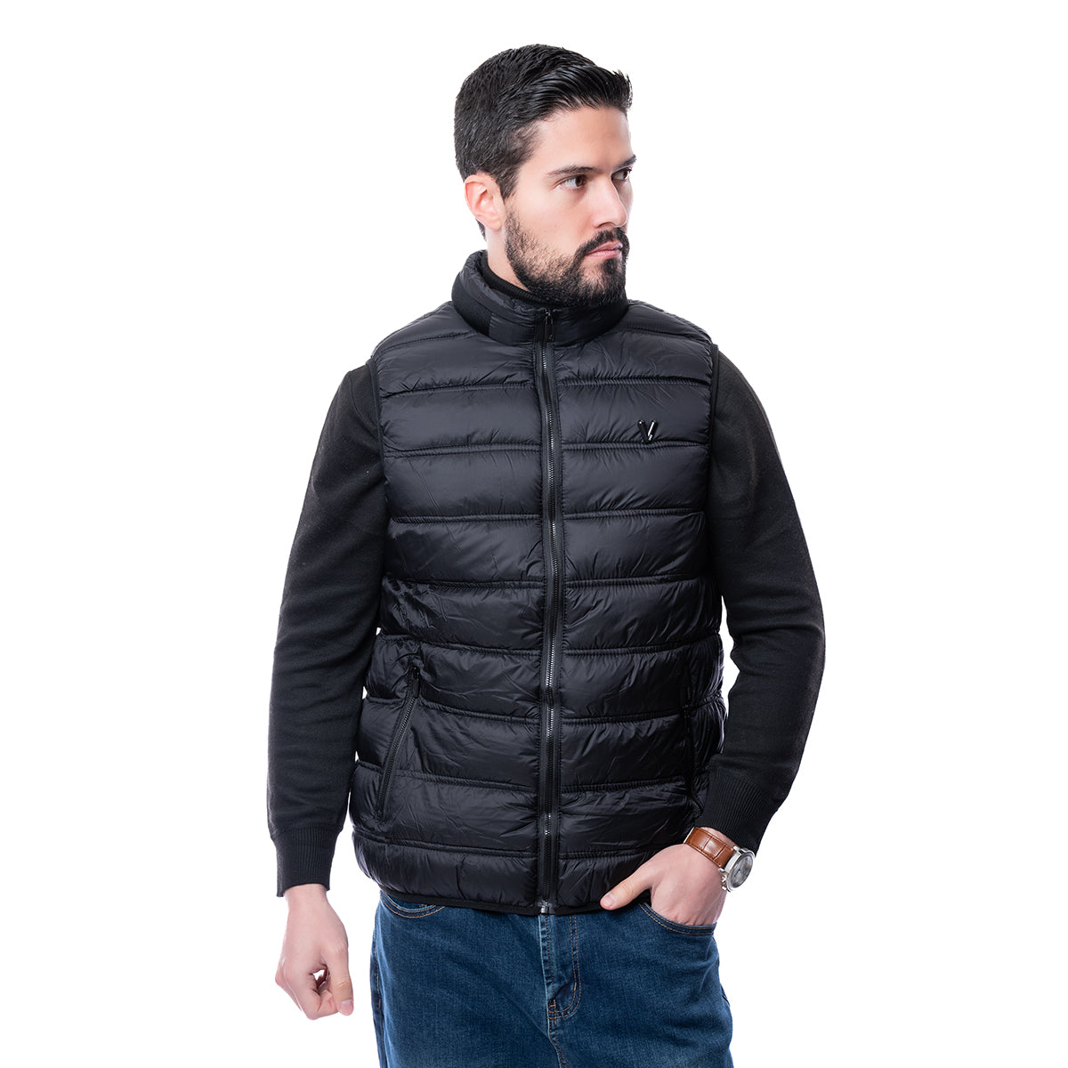 Chaleco acolchado en color negro con cierre de cremallera y bolsillos laterales.