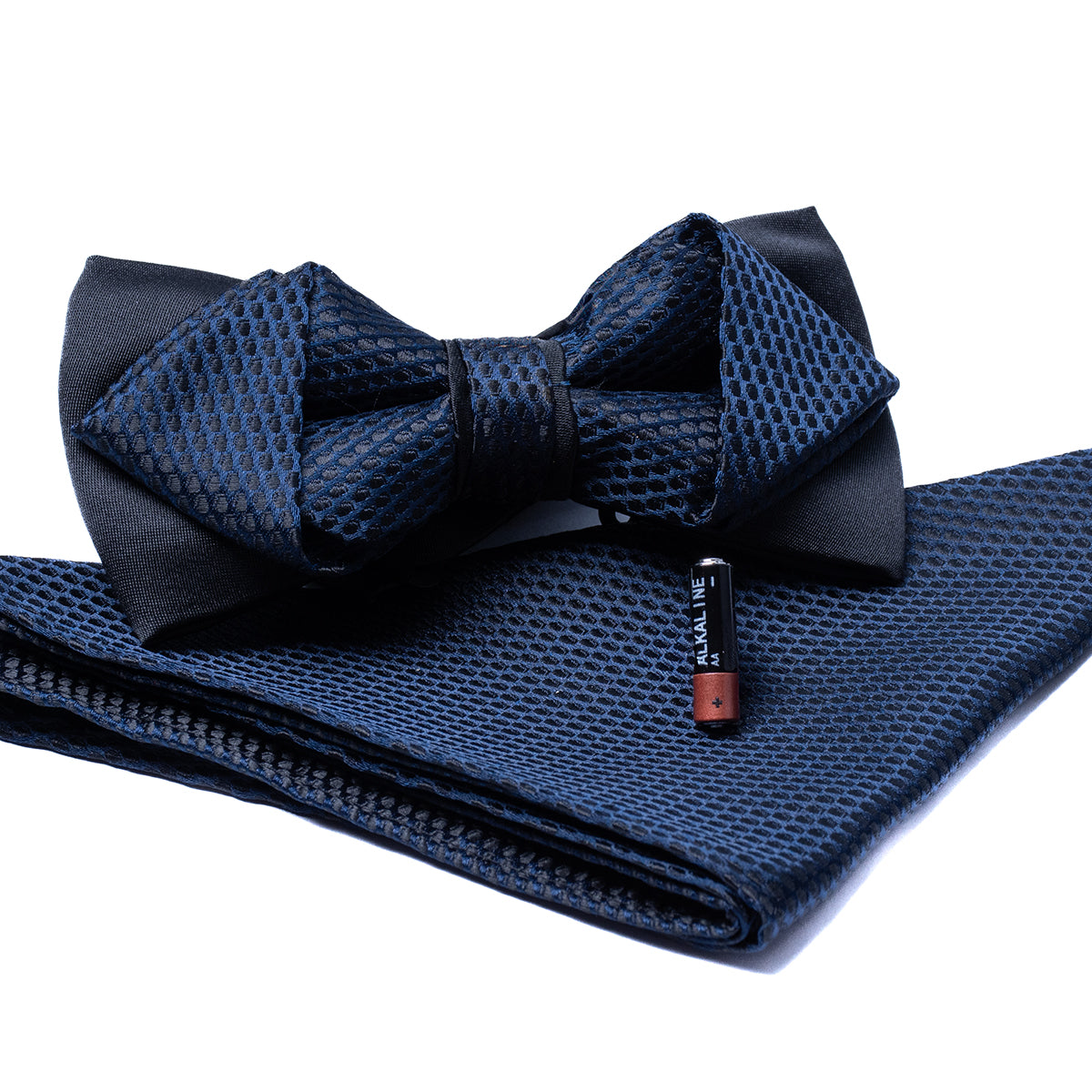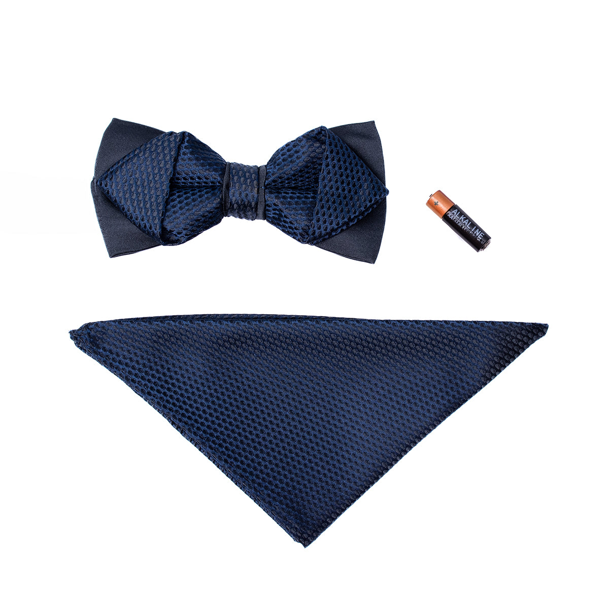 Set que incluye moño y pañuelo marinos con diseño texturizado tipo panal, además de un pin decorativo metálico. Este set aporta un equilibrio perfecto entre elegancia y autenticidad, dándole a tu look un detalle que refleja tu estilo único.
