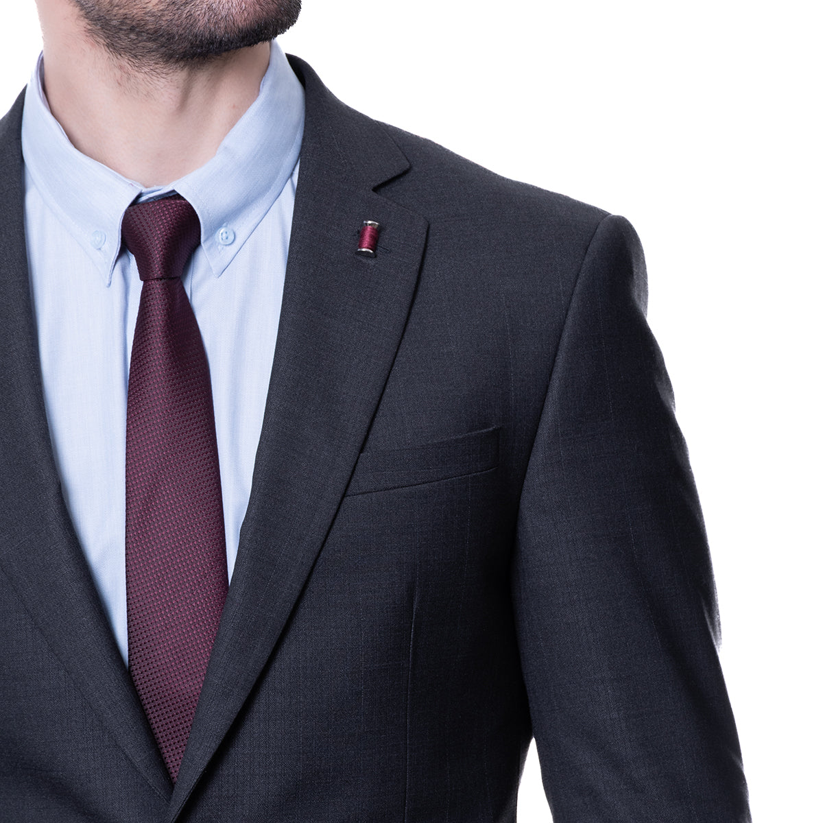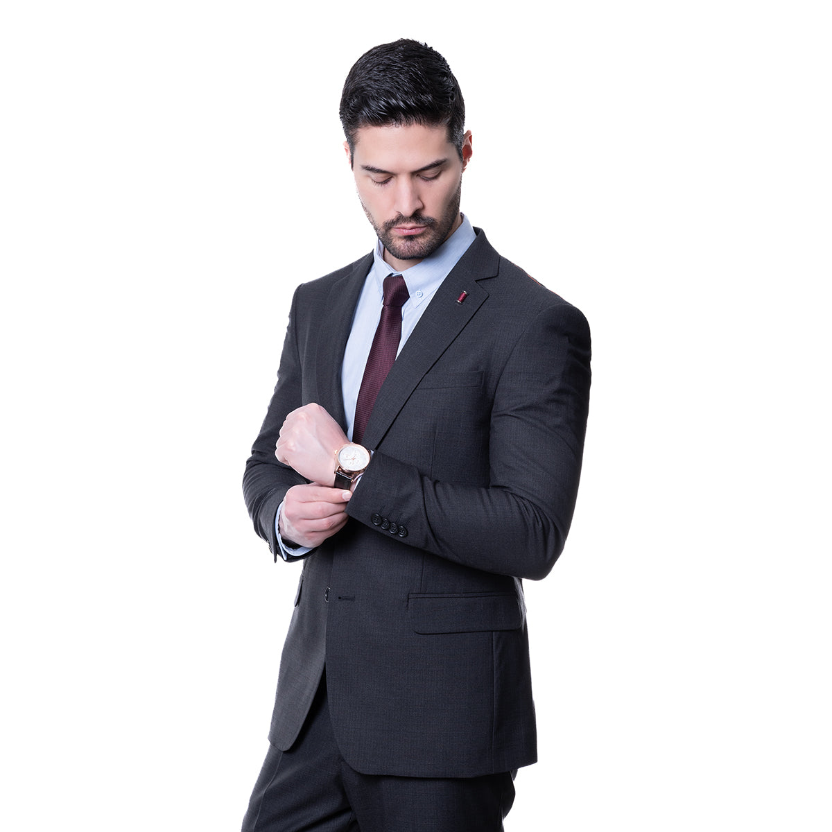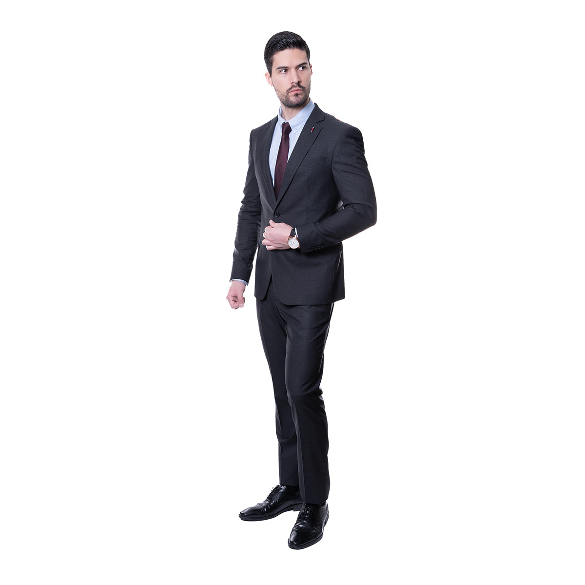 Traje corte Skinny Fit de 2 piezas en color oxford con diseño liso. Saco con solapa en muesca, dos botones frontales y bolsillos con solapa. Pantalón con diseño liso y bolsillos traseros. Con el corte SKINNY FIT tendrás un outfit cómodo que se adapta, con un estilo ajustado que estiliza tu cuerpo.