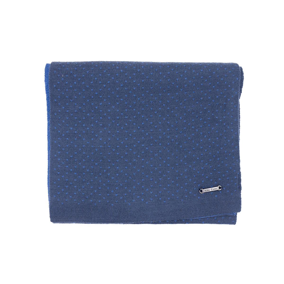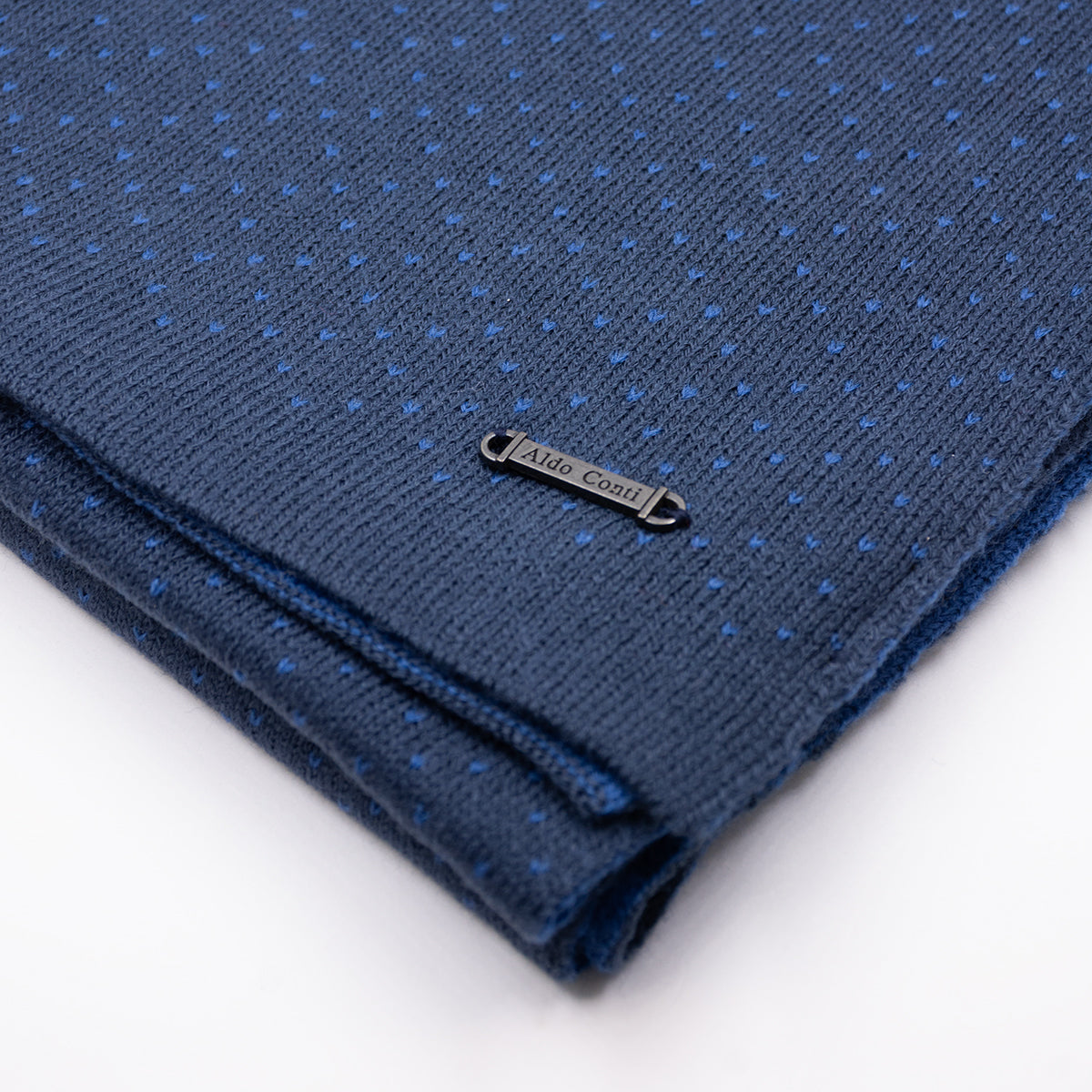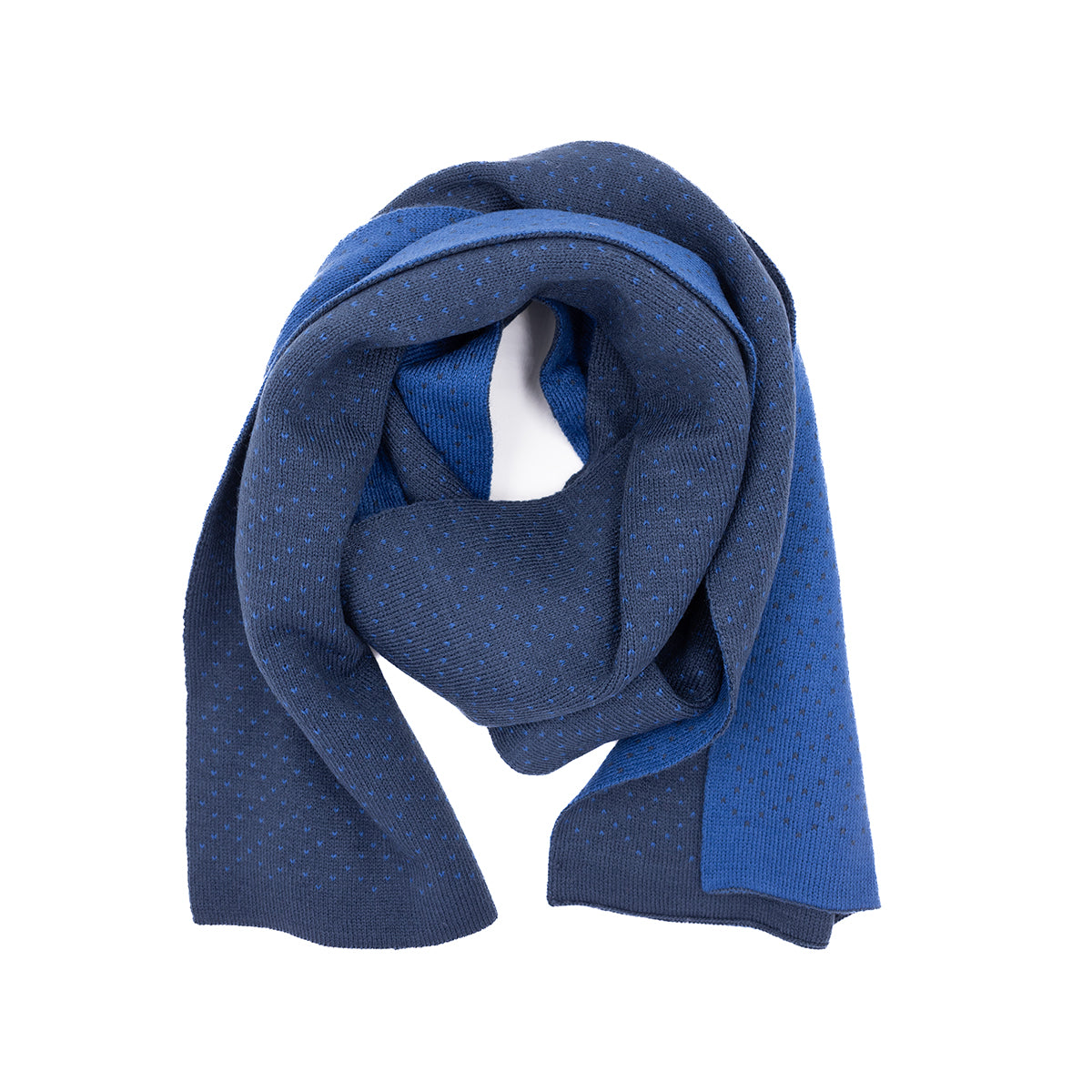 Bufanda de color Marino con diseño de cuadros y tonos contrastantes.
