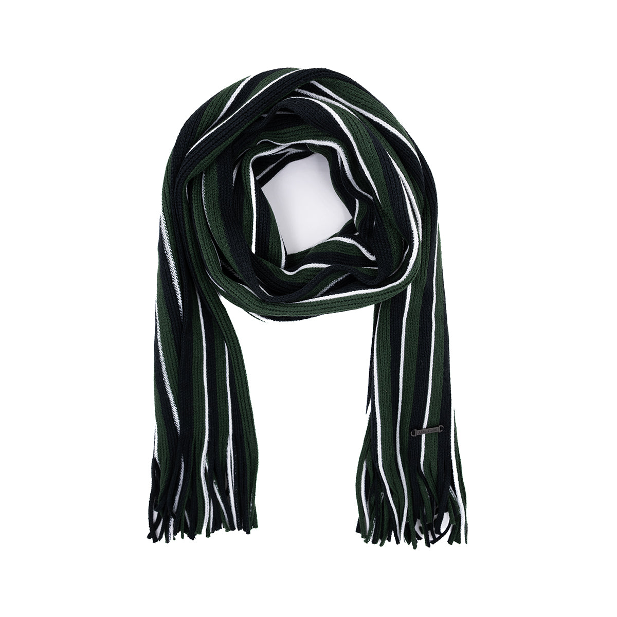 Bufanda de color Verde con diseño de rayas en contraste.
