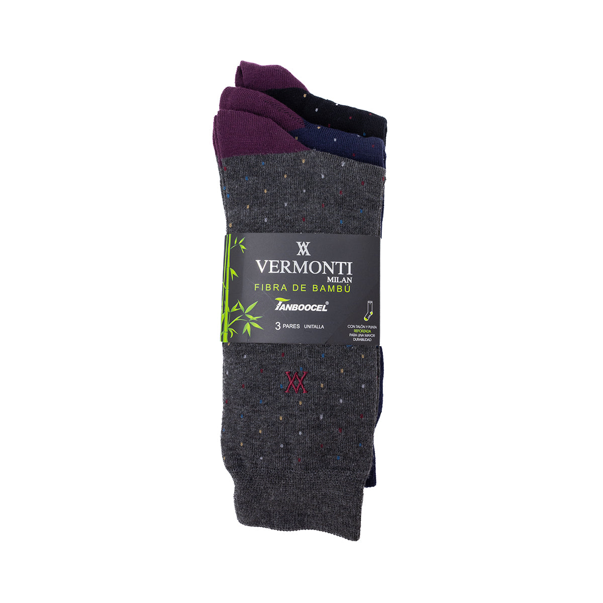 Set de 6 pares de calcetines largos de fibra de bambú en diseño liso en varios colores.