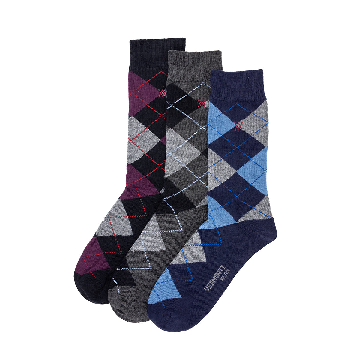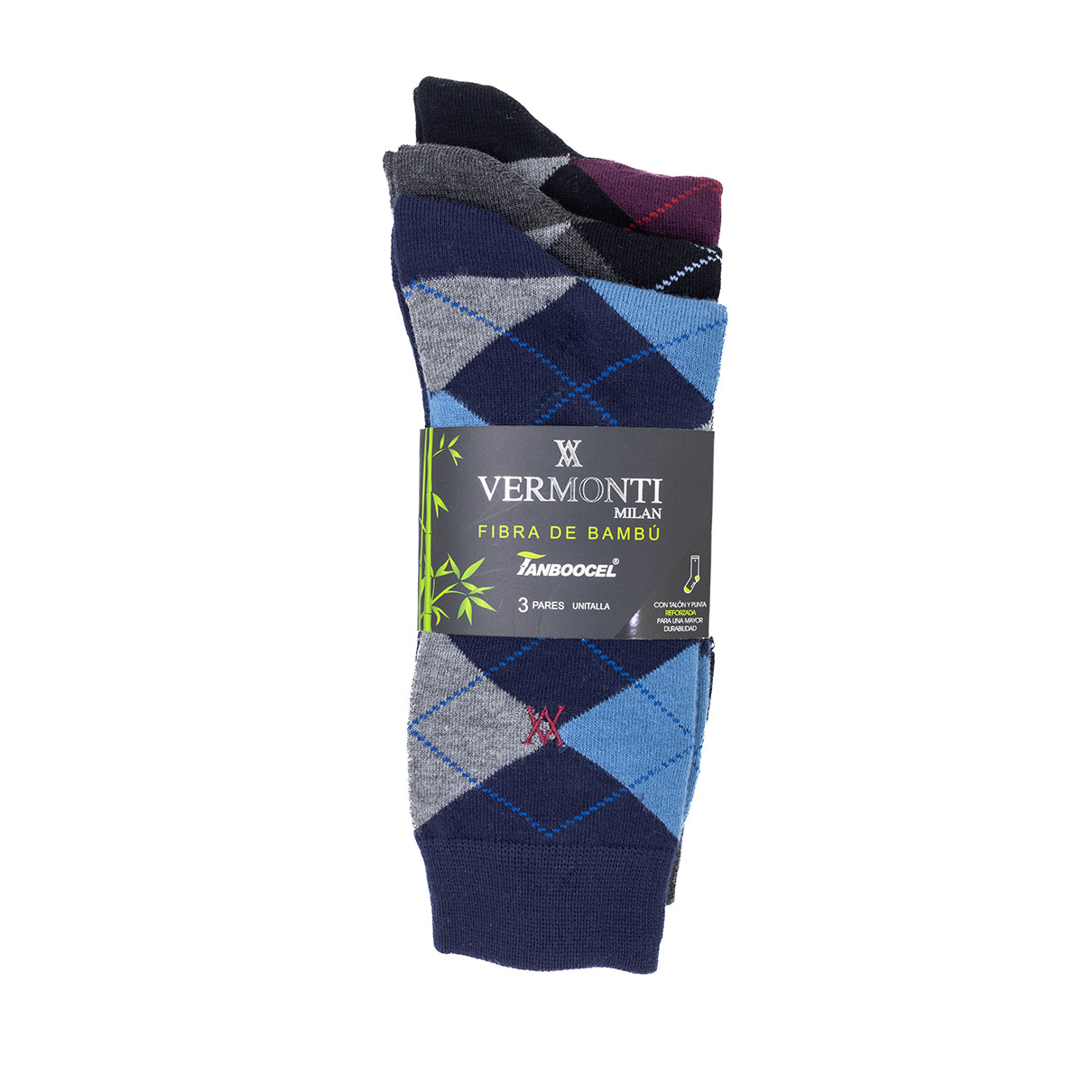 Set de 3 pares de calcetines largos de fibra de bambú en diseño rayado.