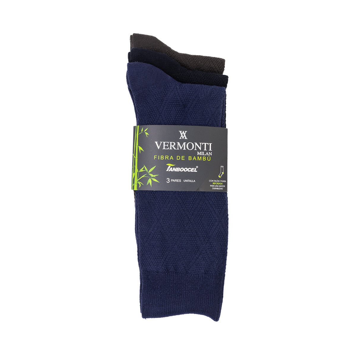 Set de 3 pares de calcetines largos de fibra de bambú en diseño liso.