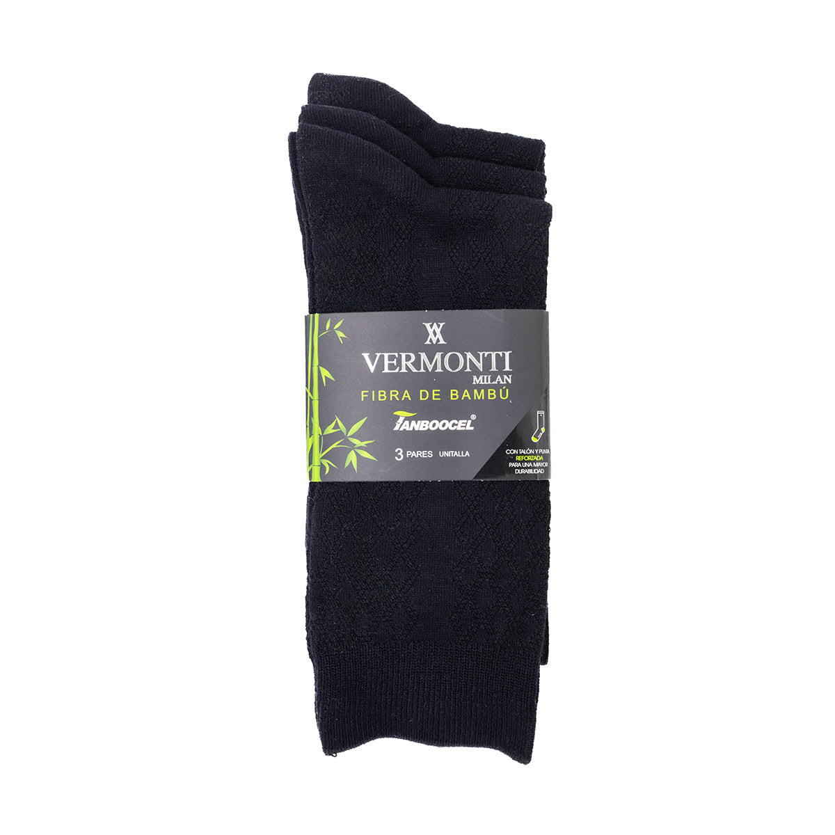 Set de 3 pares de calcetines largos de fibra de bambú en diseño liso.