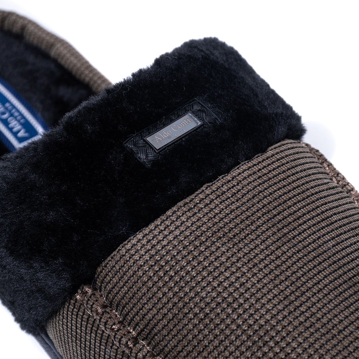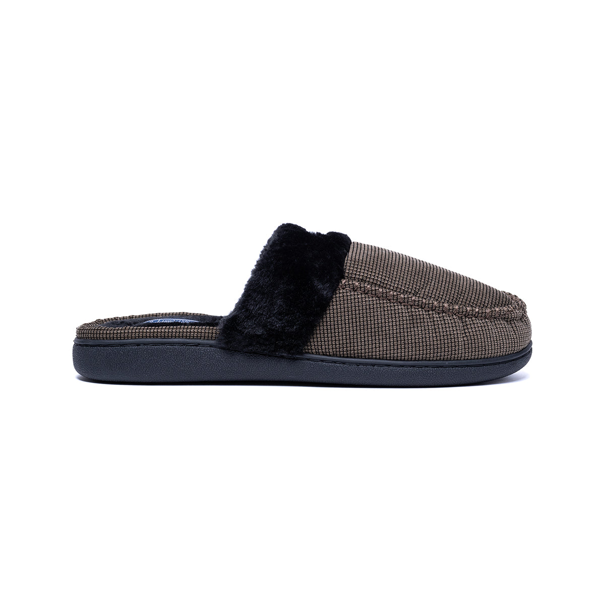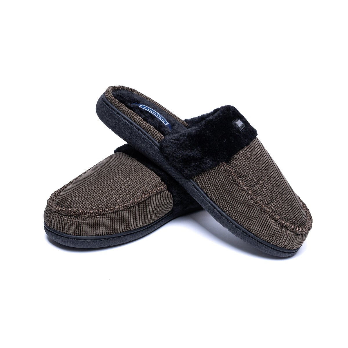 Pantuflas acolchadas en diseño cuadriculado color café con suela antiderrapante.