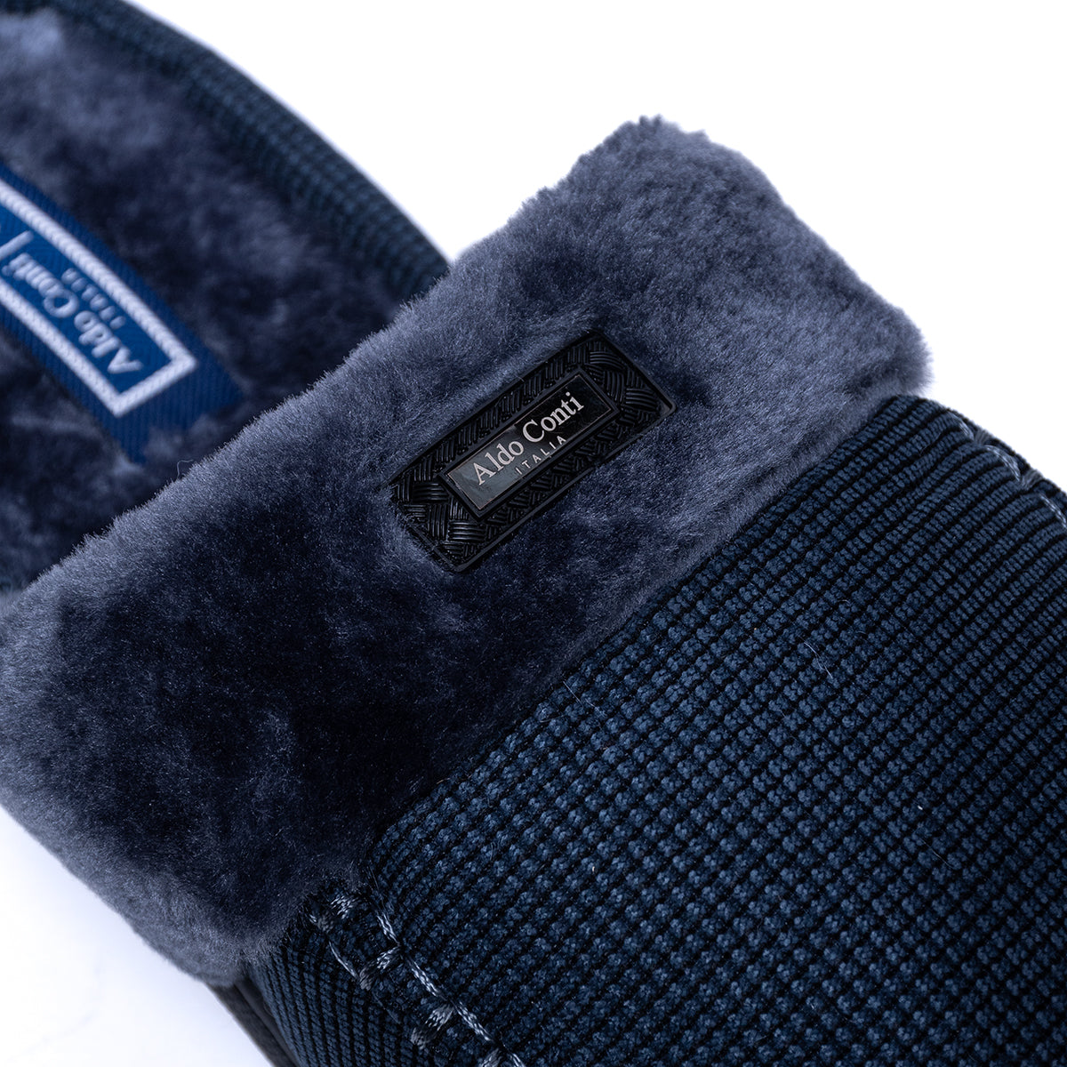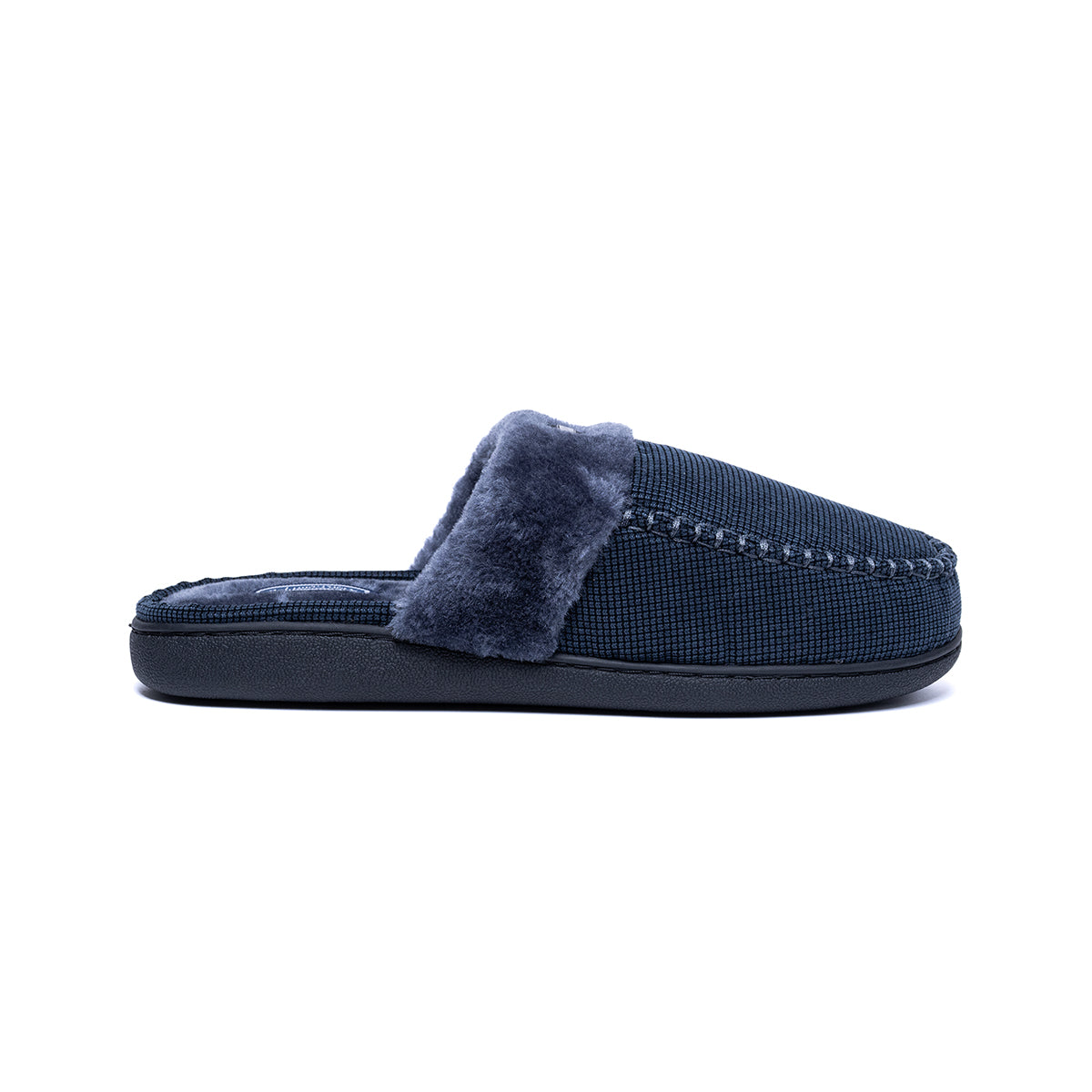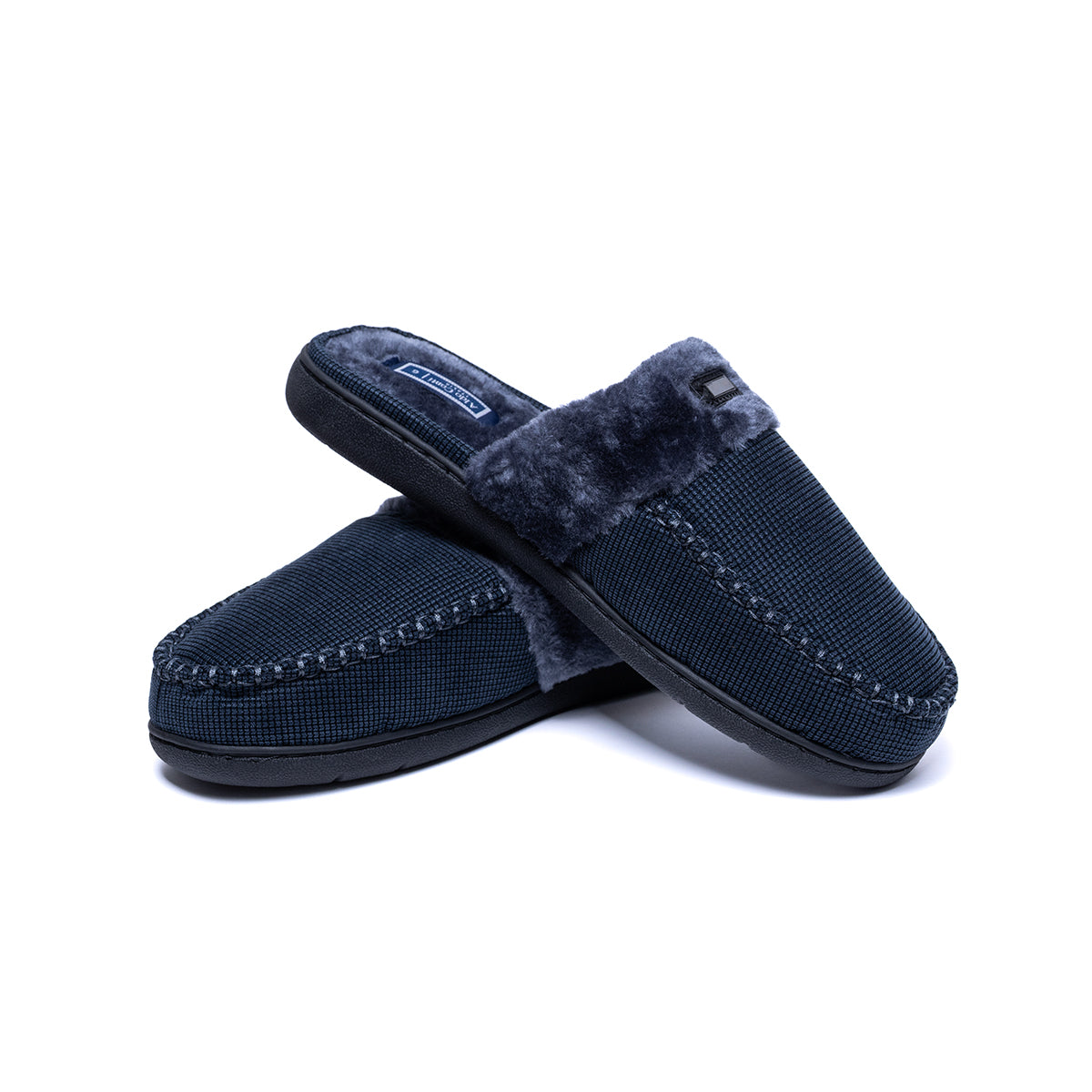 Pantuflas acolchadas en diseño cuadriculado color marino con suela antiderrapante.