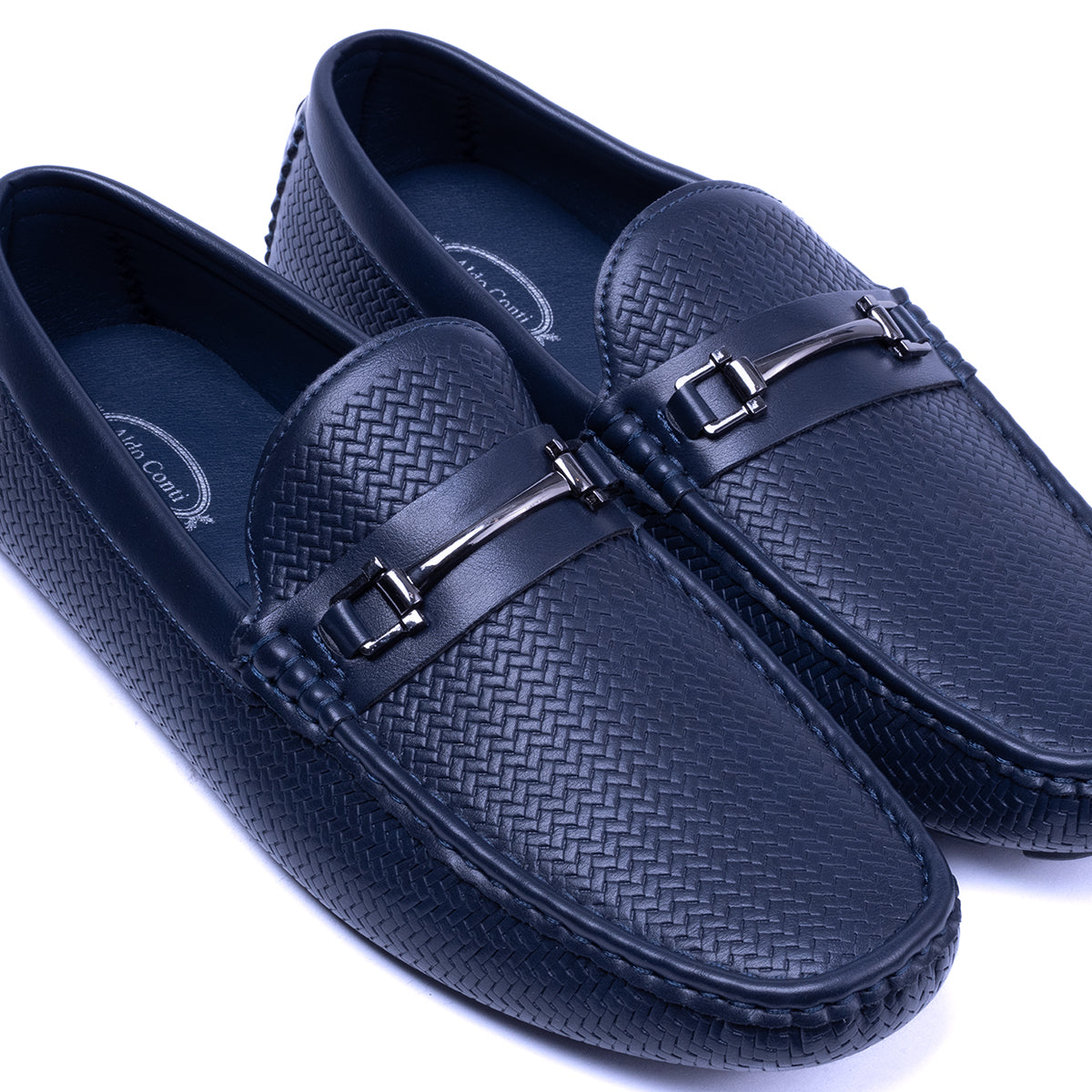 Mocasines en color azul marino con diseño texturizado y suela antiderrapante.