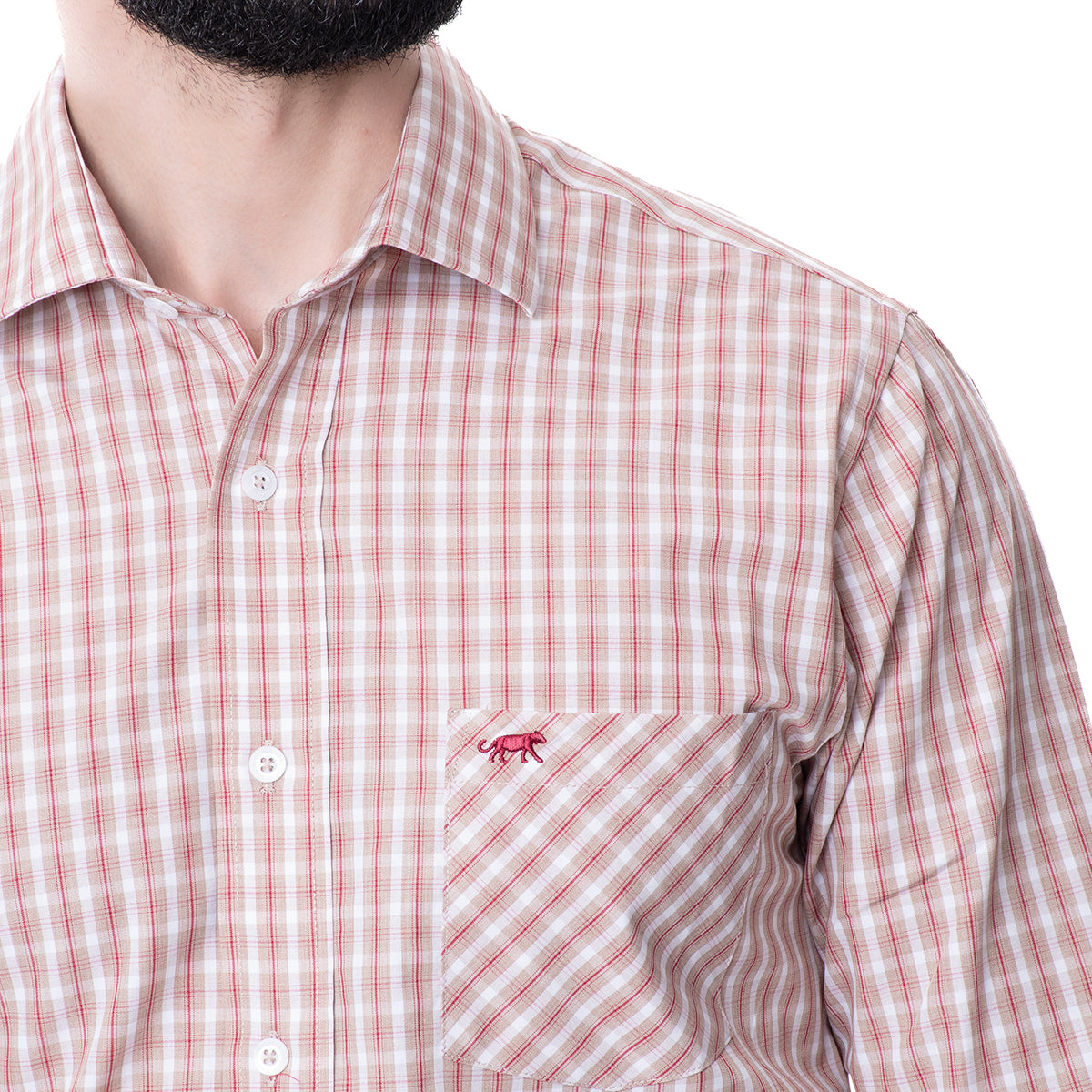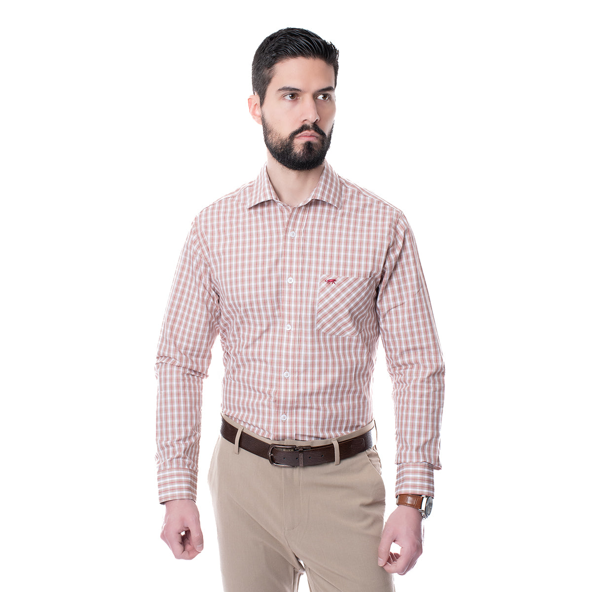 Camisa corte CLASSIC FIT khaki con diseño a cuadros, cuello italiano, botonadura al frente, manga larga y bolsillo a la altura del pecho. Con el corte CLASSIC FIT tendrás un outfit cómodo, conservando el estilo relajado que tanto buscas.