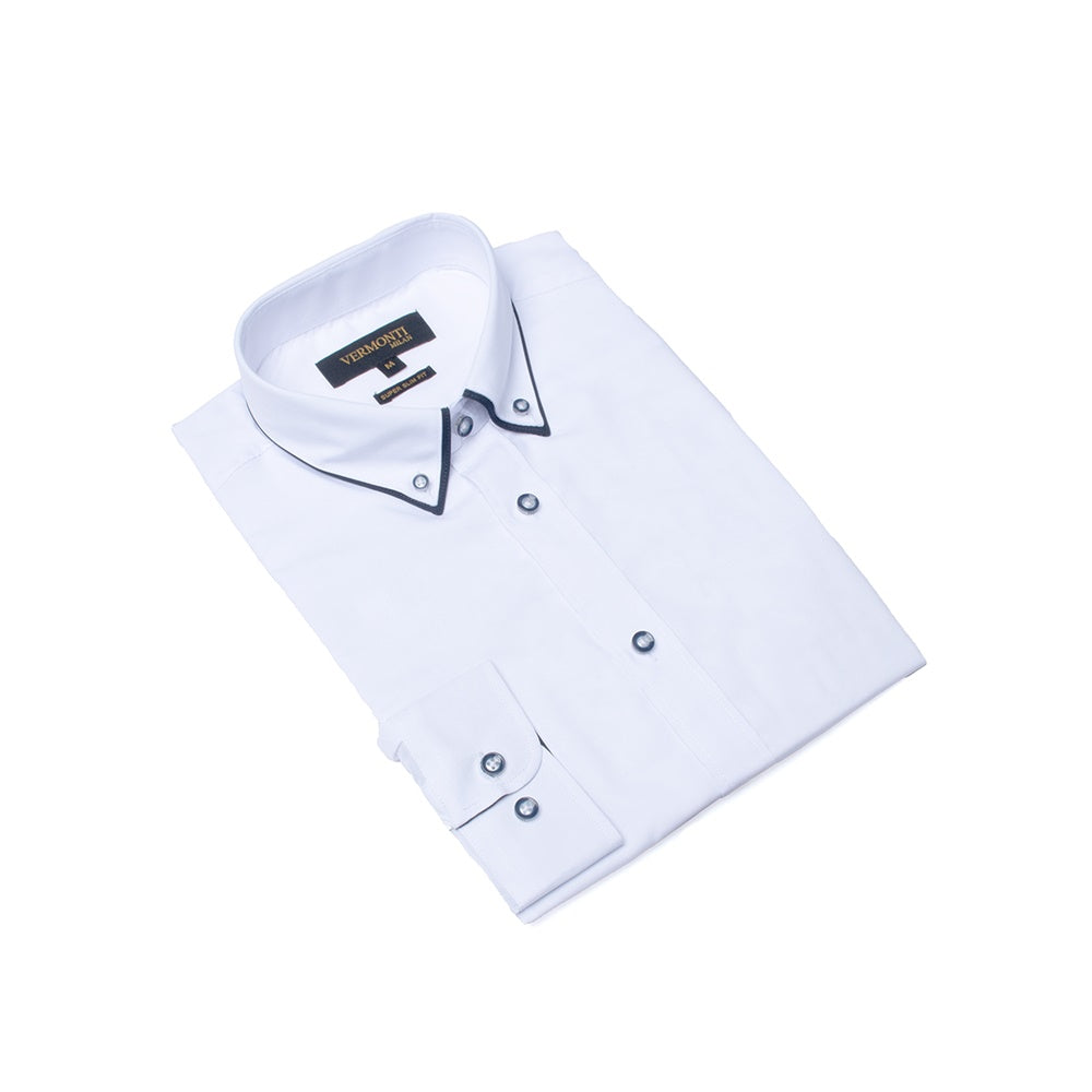 Cuello button down, cierre frontal de botonadura y manga larga.