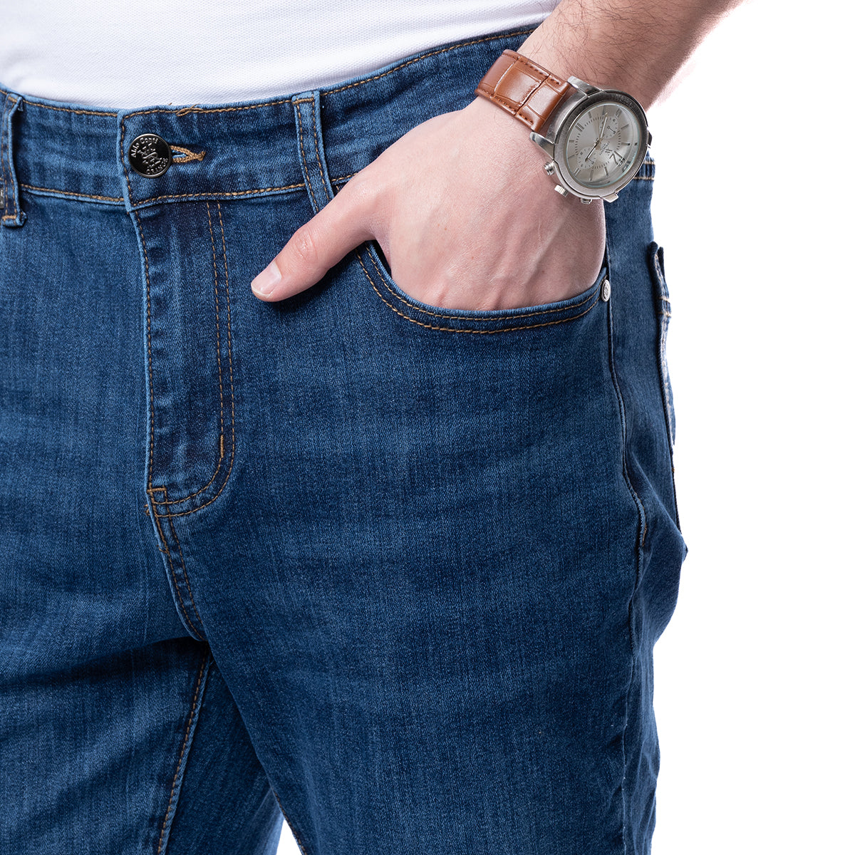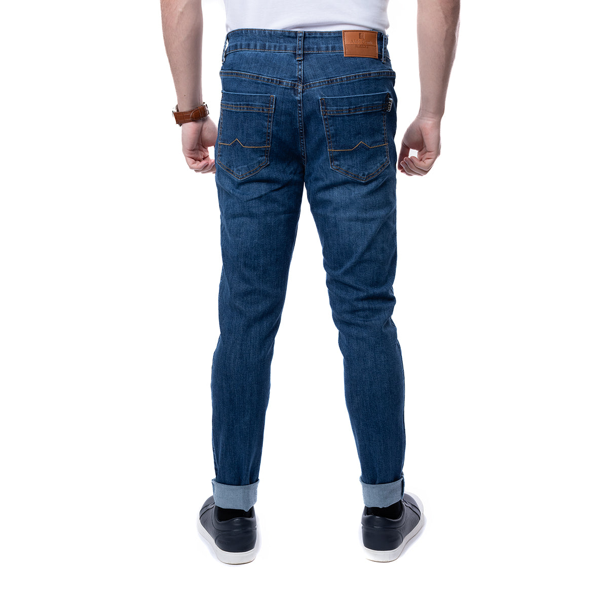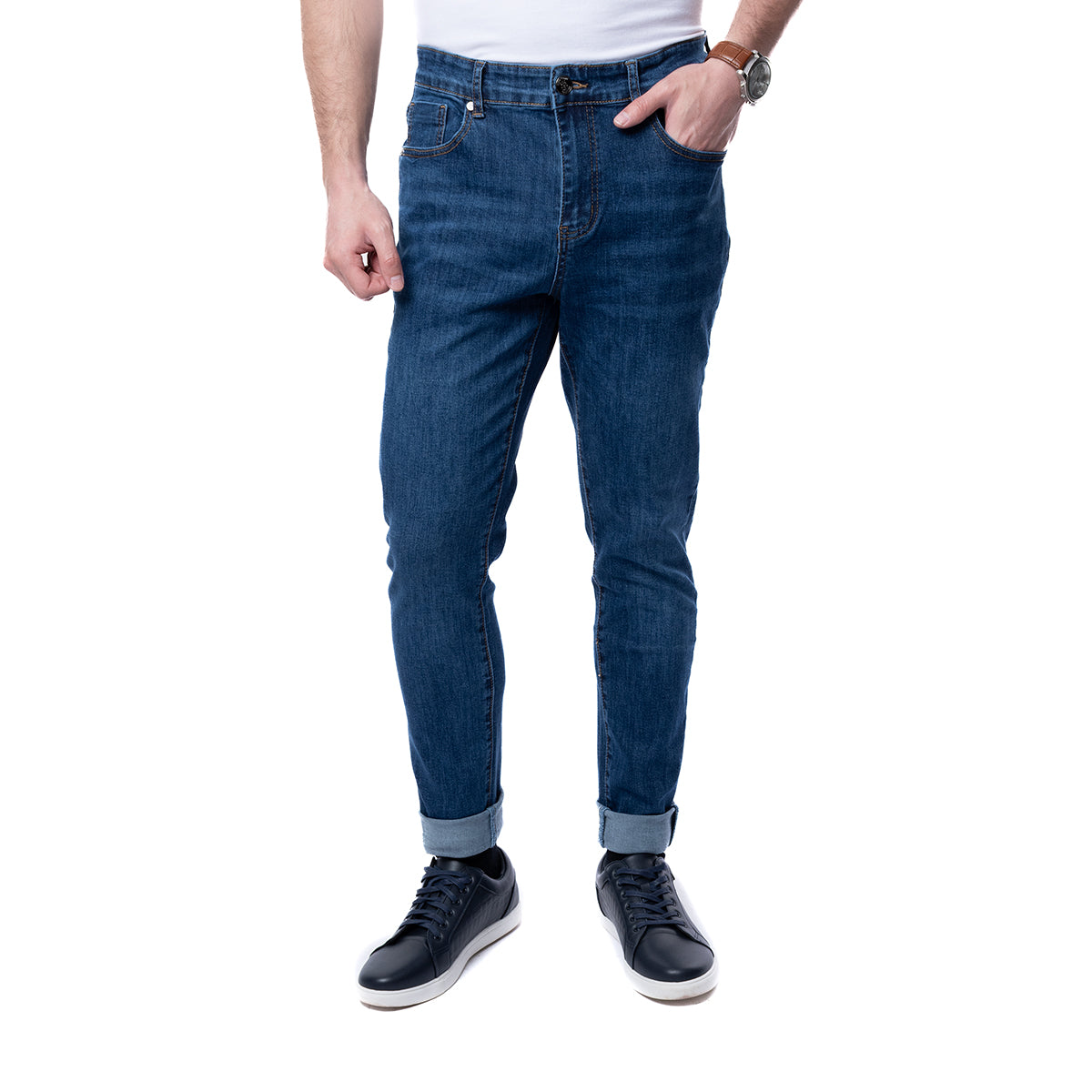 Pantalón estilo “Jeans” corte Skinny Fit azul marino con diseño liso, bolsillos frontales y traseros clásicos. Con el corte SKINNY FIT tendrás un outfit cómodo que se adapta, con un estilo ajustado que estiliza tu cuerpo.