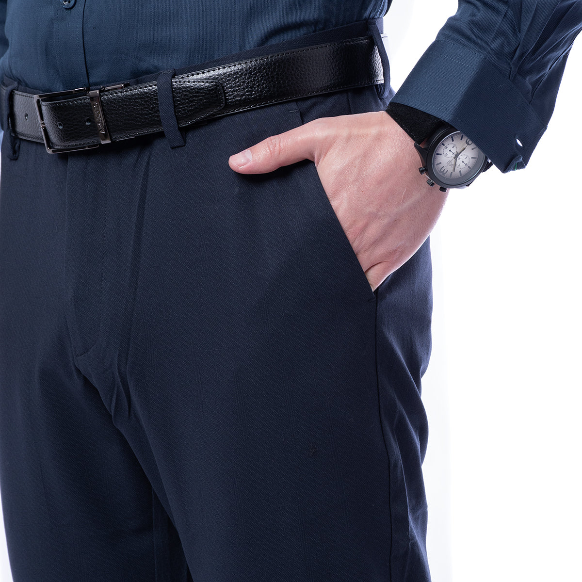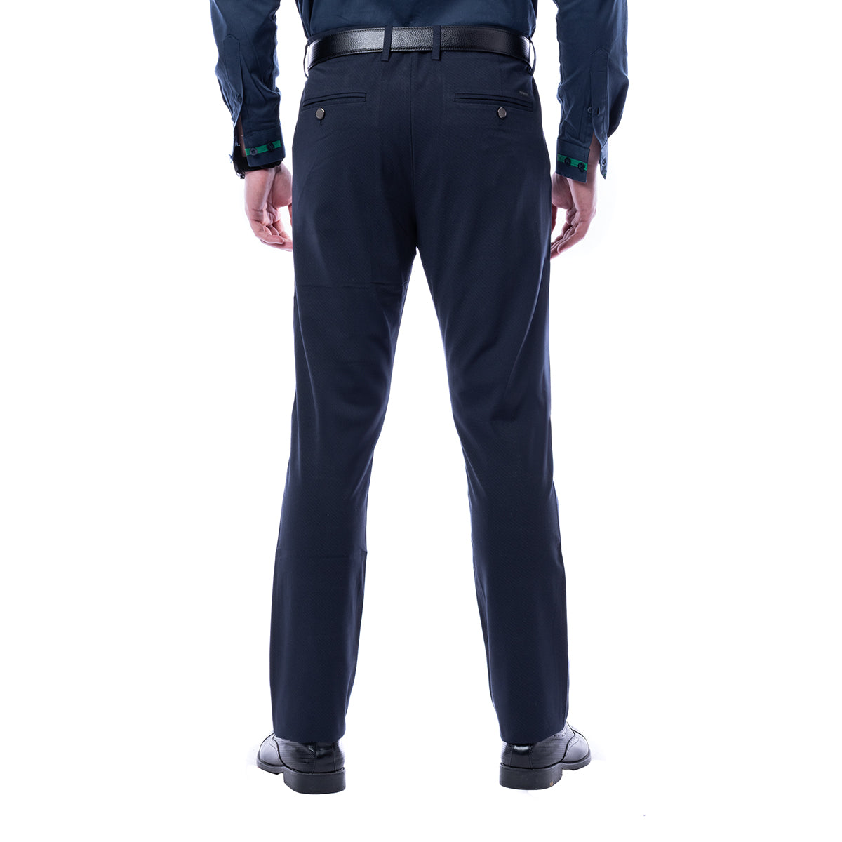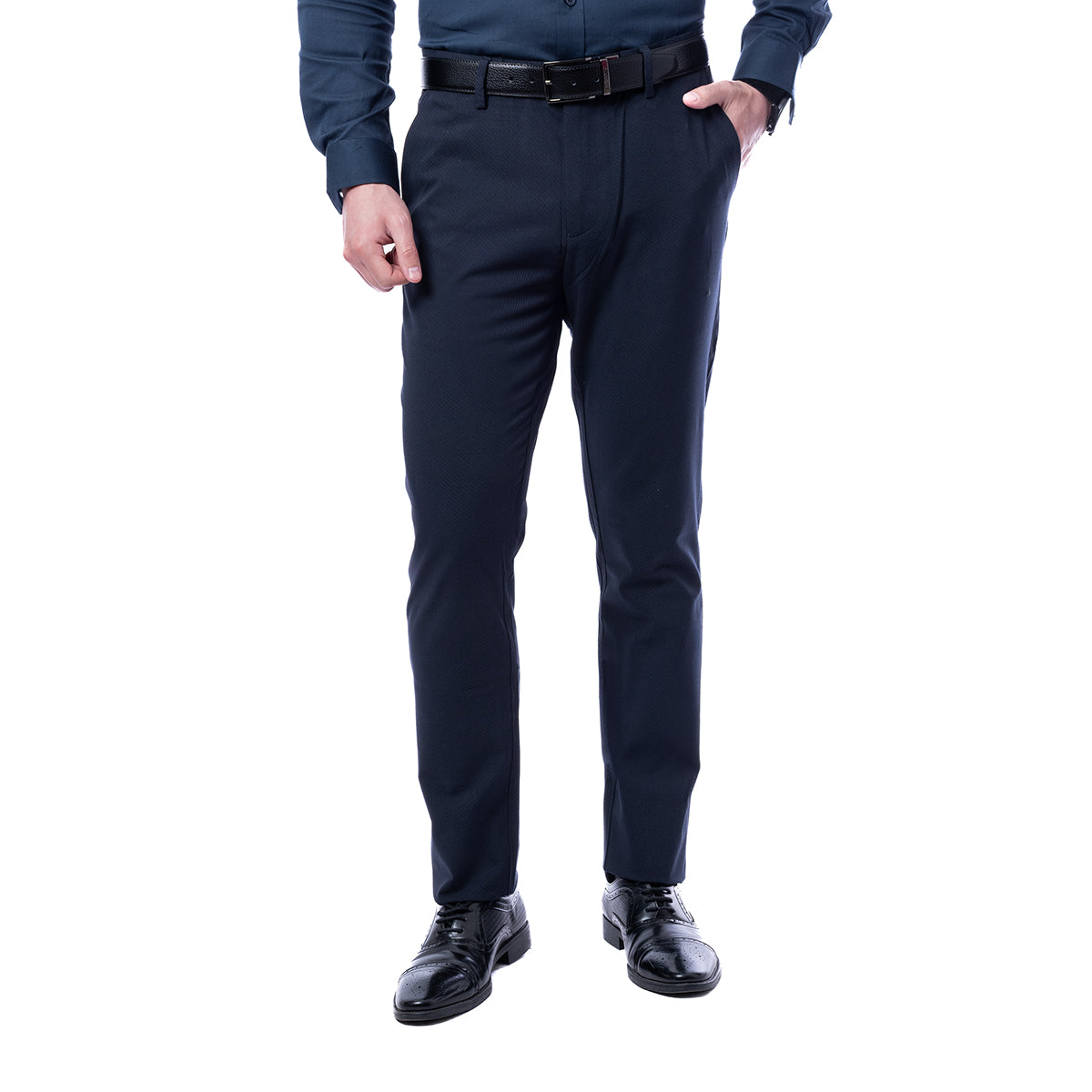 Pantalón con bolsillos traseros y cierre de cremallera. Corte Slim Fit que brinda un ajuste moderno y estilizado.