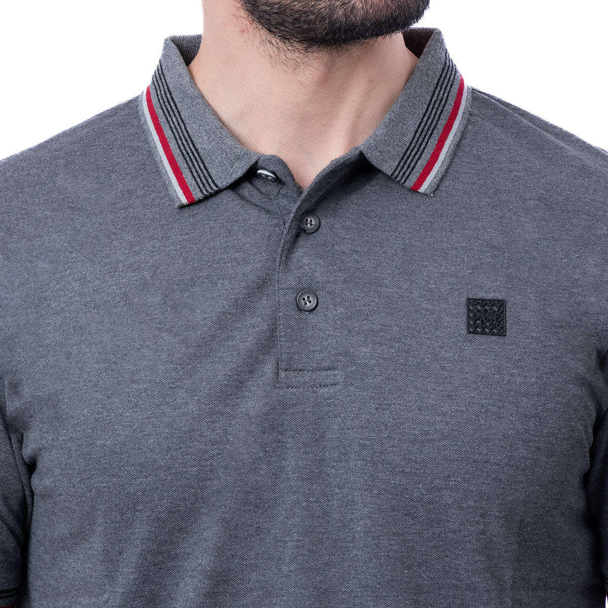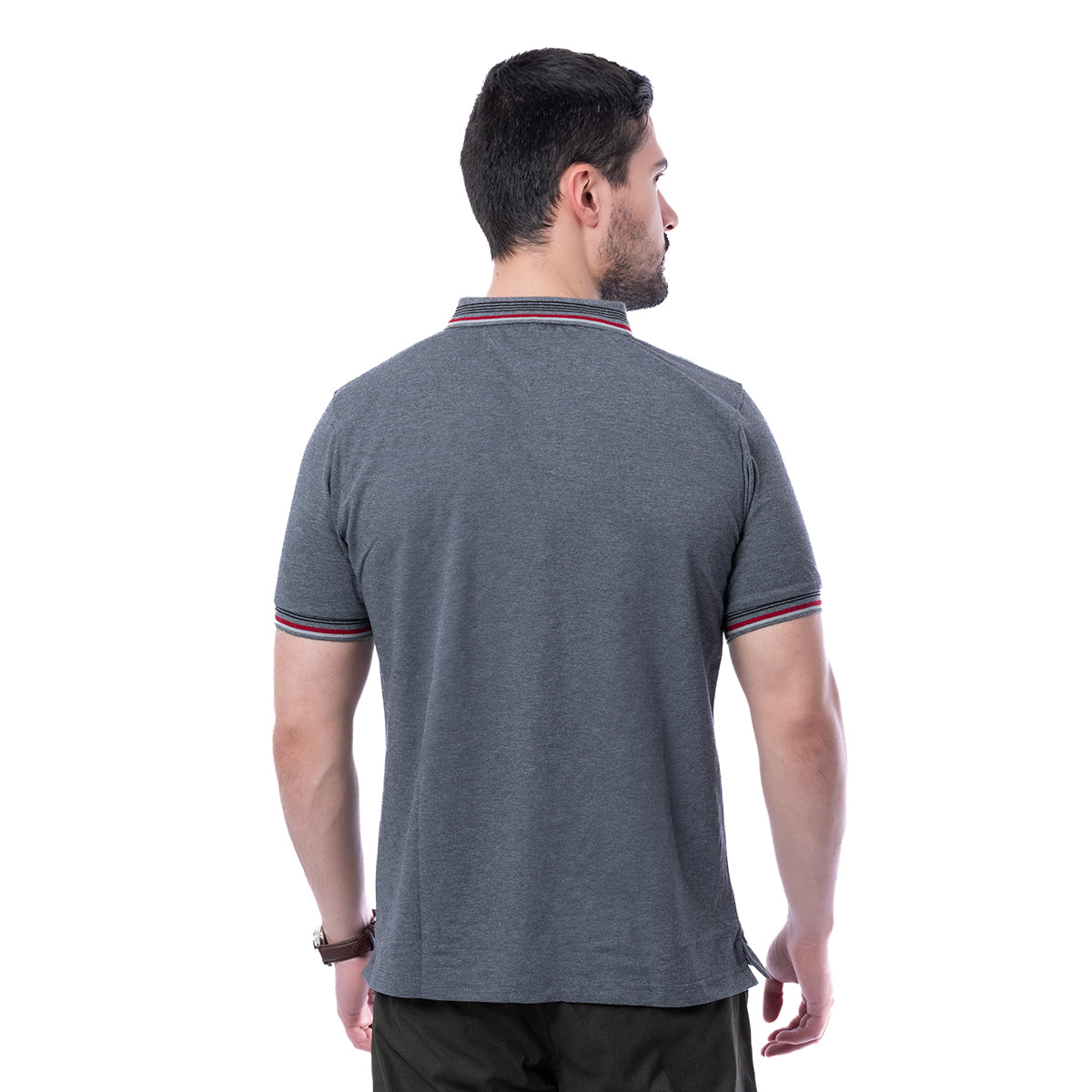 Playera tipo Polo de corte Slim Fit, en color oxford, con diseño liso. Cuello camisero y manga corta . Moldeable al cuerpo y tela suave. Cierre de botonadura a la altura del pecho.