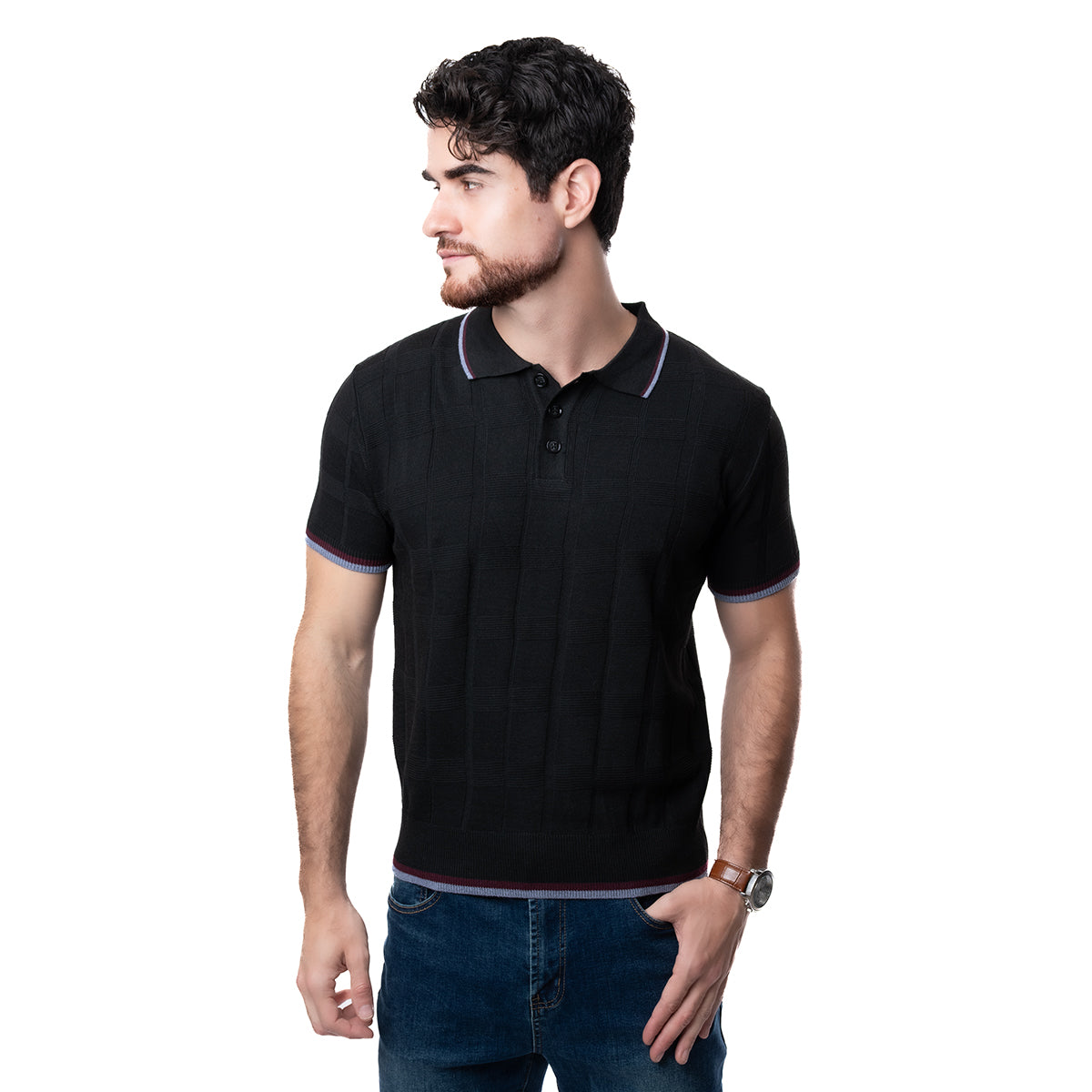 Playera Polo corte Slim Fit negro con diseño liso, cuello clásico, botonadura al frente y manga corta. Con el corte SLIM FIT tendrás un atuendo cómodo, dándote la libertad con un estilo semi ajustado.
