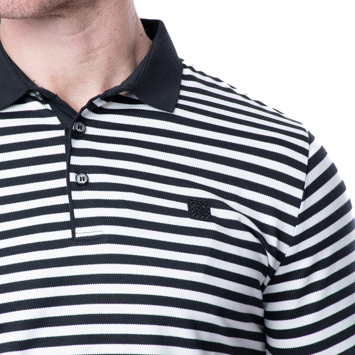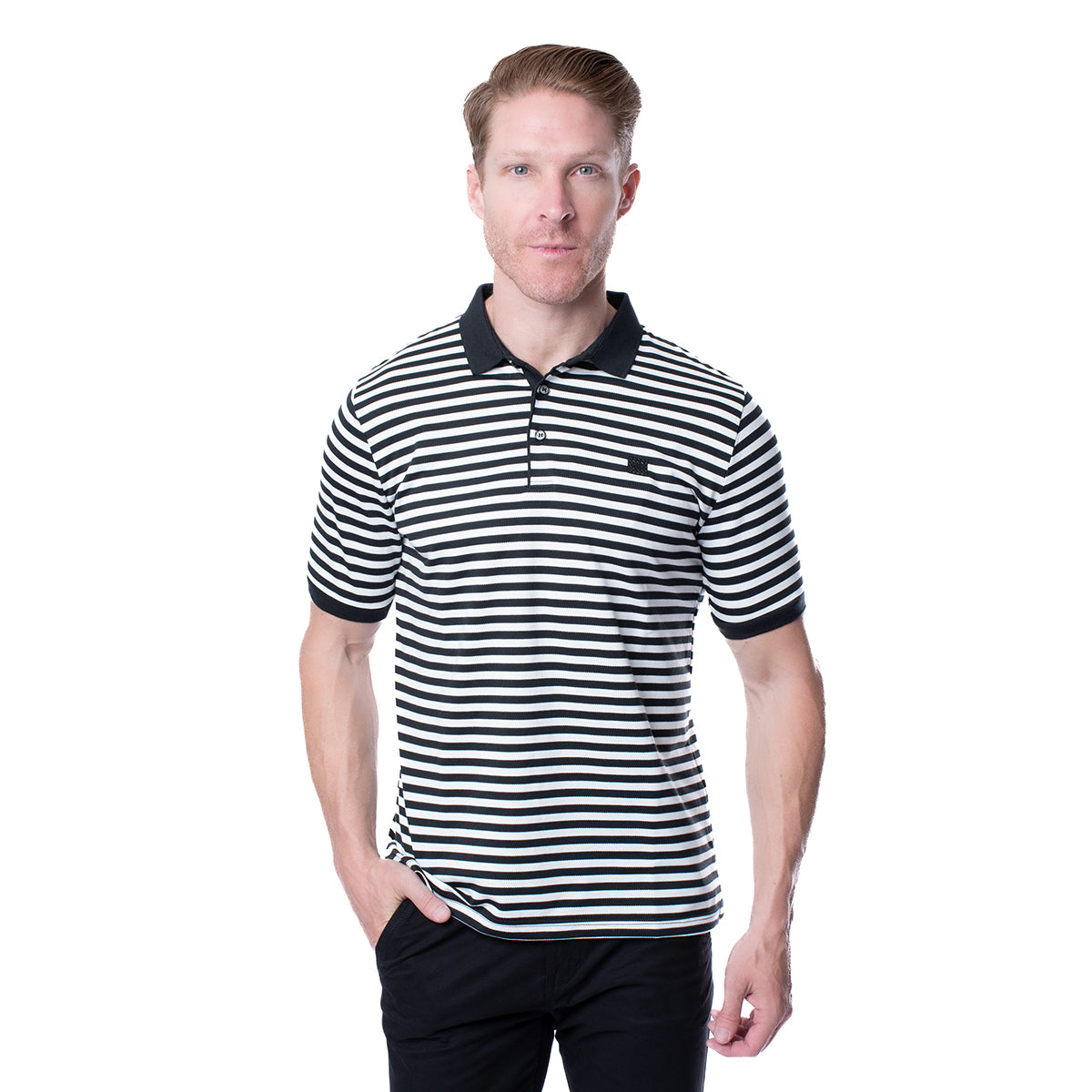 Polo en color negro con rayas. Corte Slim Fit que brinda un ajuste moderno y estilizado.