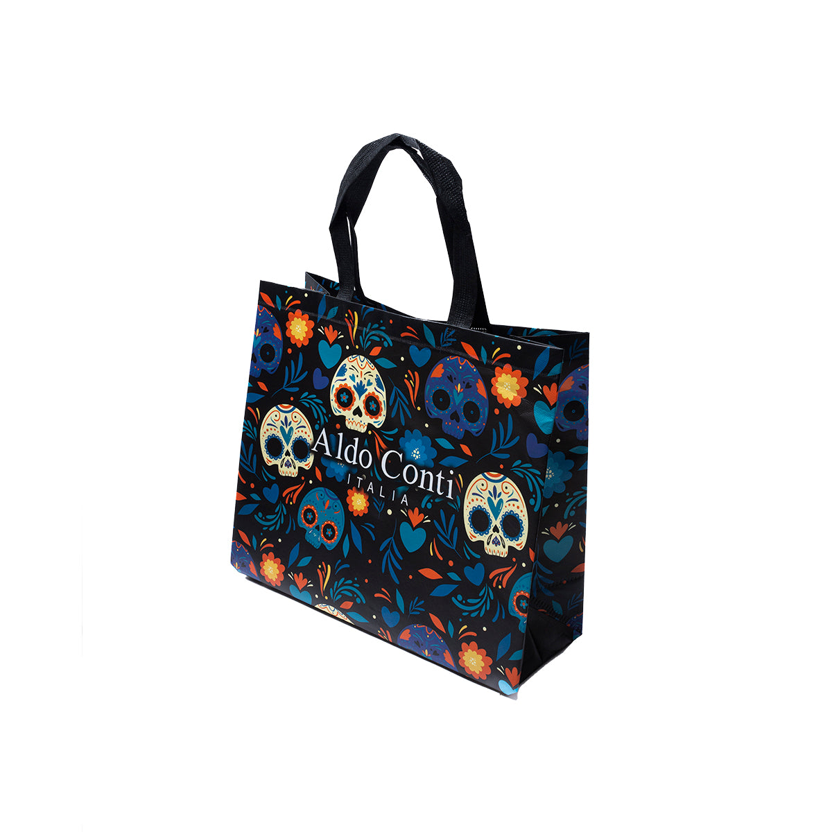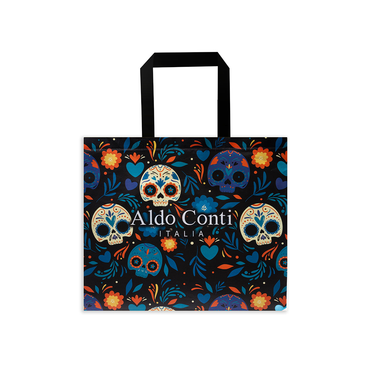 Bolsa grande de plástico con sujetador de asa y diseño floral con calaveras. Nuestras bolsas reutilizables son la mejor opción para verte increíble y cuidar al planeta al mismo tiempo.