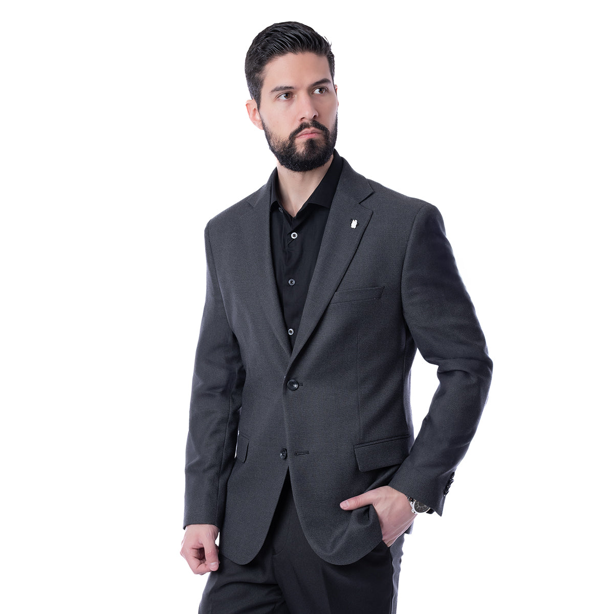 Saco corte Slim Fit gris con diseño jaspeado, solapa en muesca, dos botones frontales y bolsillos con solapa. Pin extraíble. Con el corte SLIM FIT tendrás un atuendo cómodo, dándote la libertad con un estilo semi ajustado.