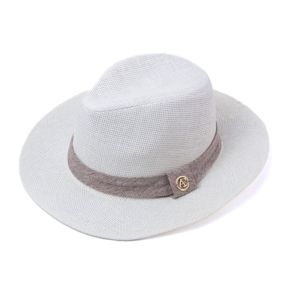 Sombrero estilo fedora blanco con diseño tejido y cinta decorativa. Un accesorio que aporta personalidad y eleva tus looks de temporada con un toque moderno.