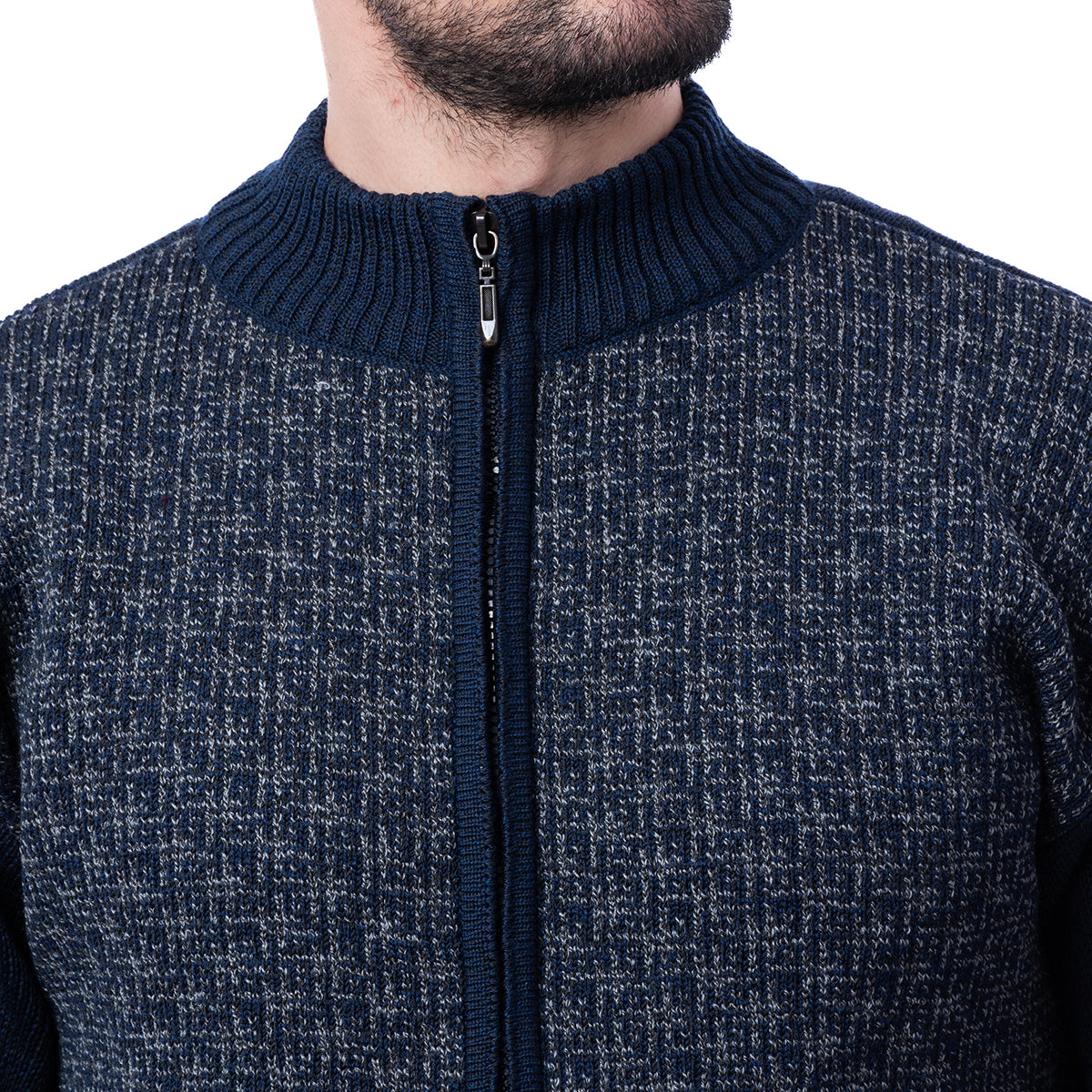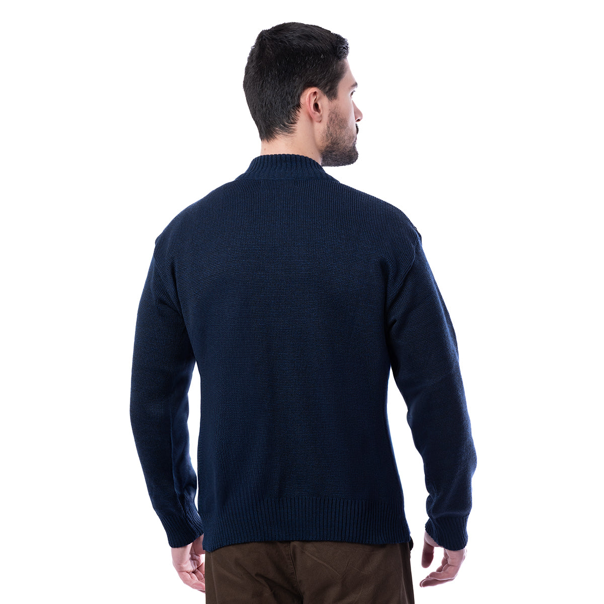 Suéter de color negro, de corte Classic Fit y diseño liso con textura. De Cuello redondo y cierre frontal.