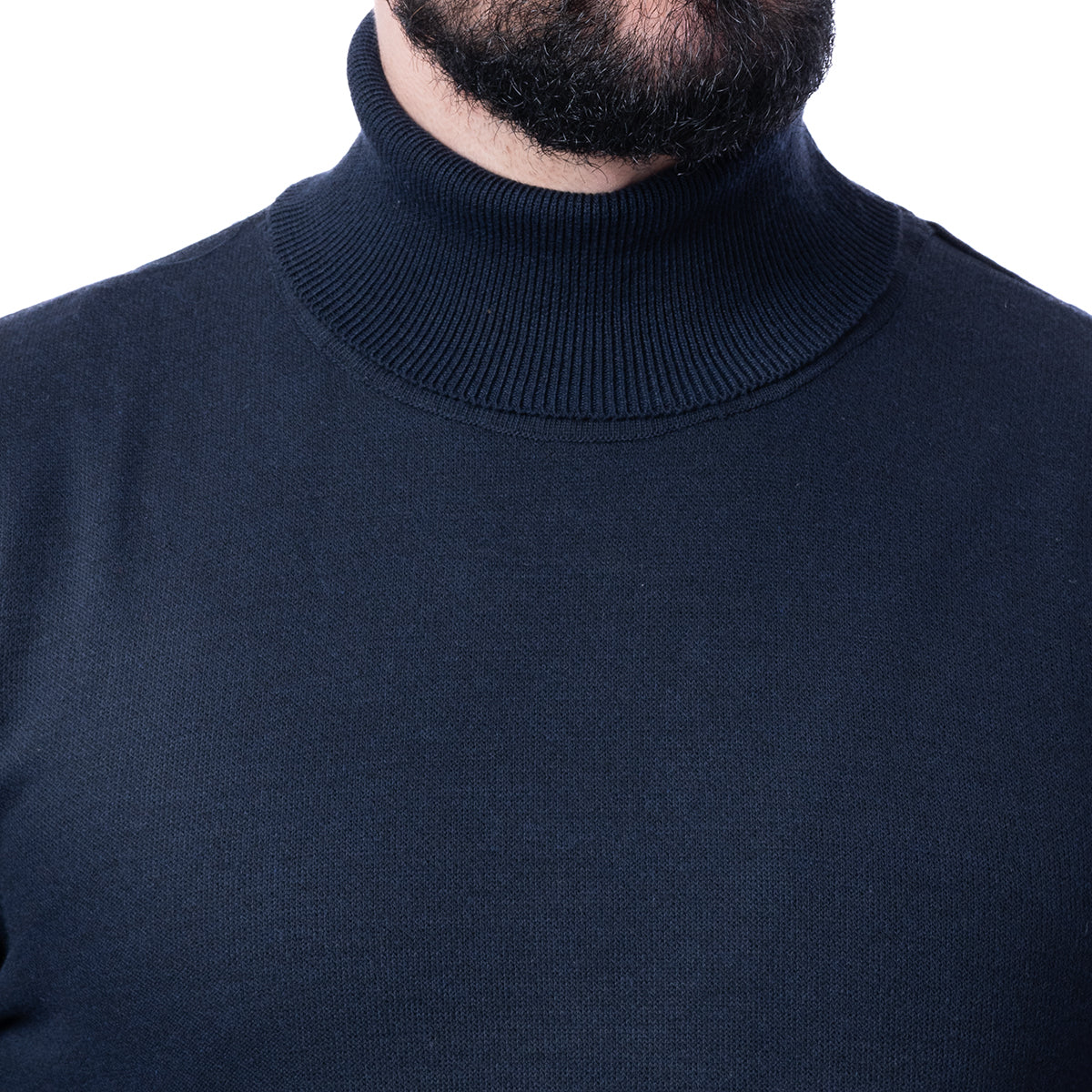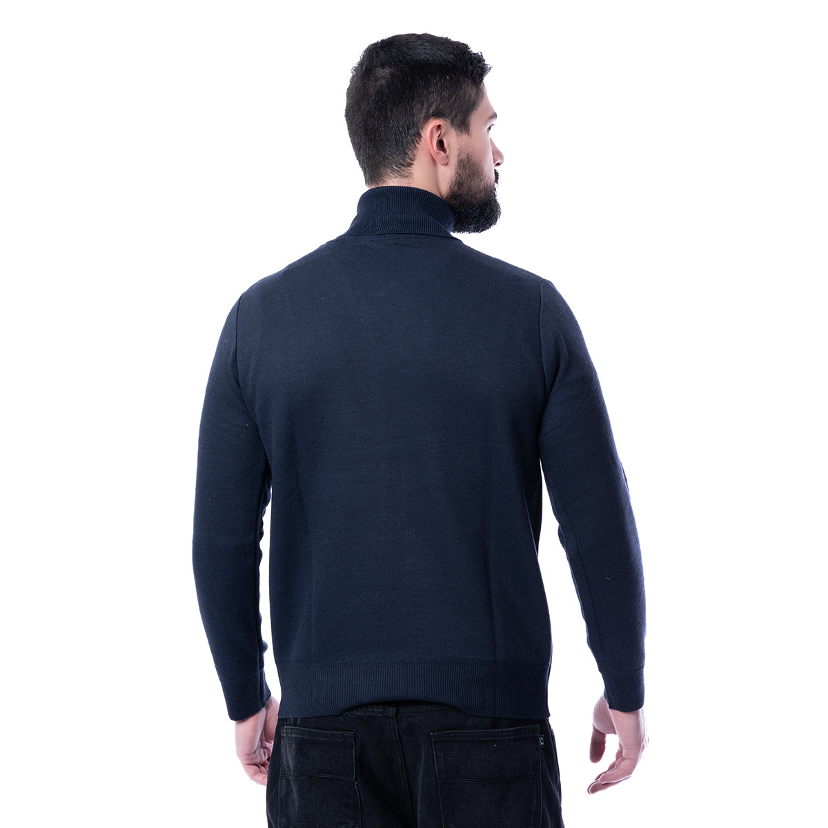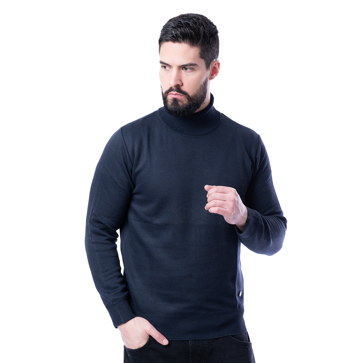 Suéter en color azul marino, cuello redondo y diseño liso.