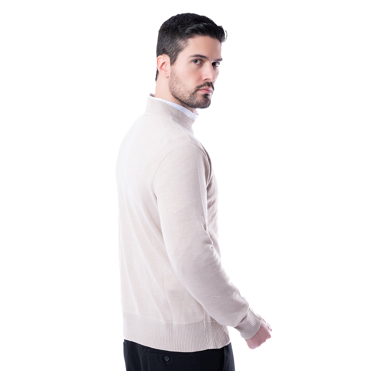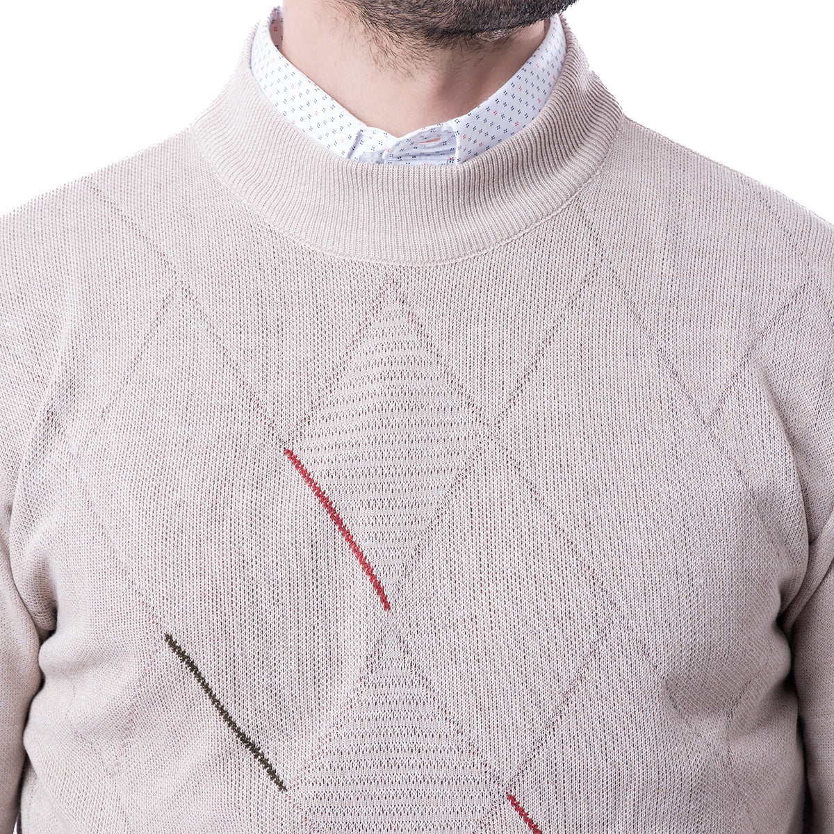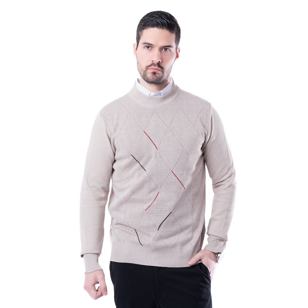 Suéter corte Slim Fit color beige con diseño de rombos y cuello redondo. Con el corte SLIM FIT tendrás un atuendo cómodo, dándote la libertad con un estilo semi ajustado.