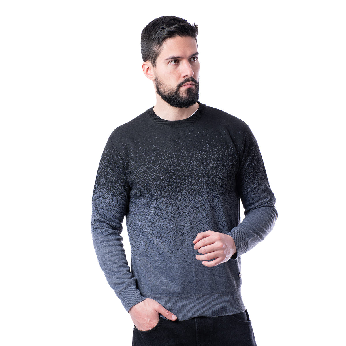 Suéter corte Slim Fit negro con diseño liso y cuello redondo. Con el corte SLIM FIT tendrás un atuendo cómodo, dándote la libertad con un estilo semi ajustado.