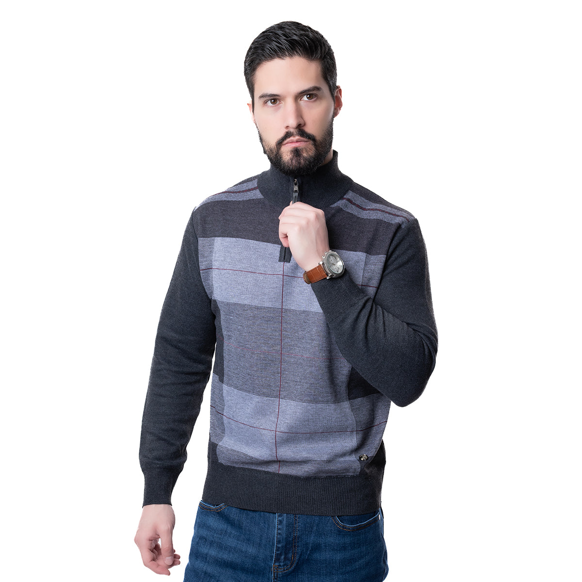 Suéter corte Slim Fit oxford con diseño a cuadros y cuello con cremallera. Con el corte SLIM FIT tendrás un atuendo cómodo, dándote la libertad con un estilo semi ajustado.