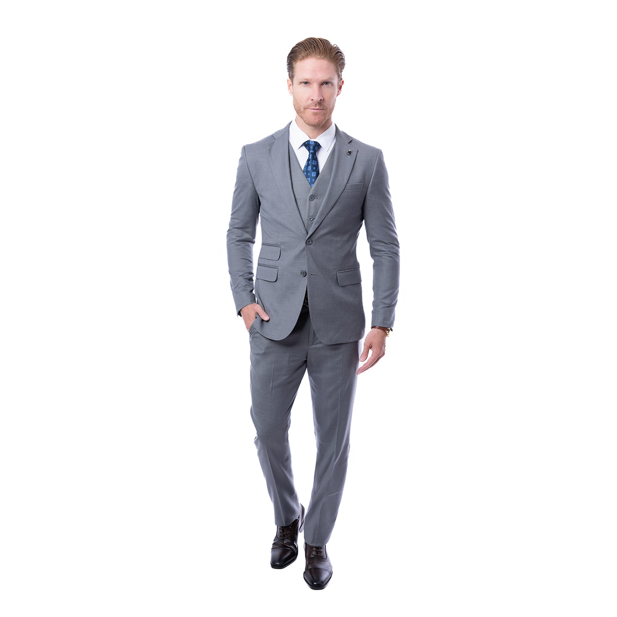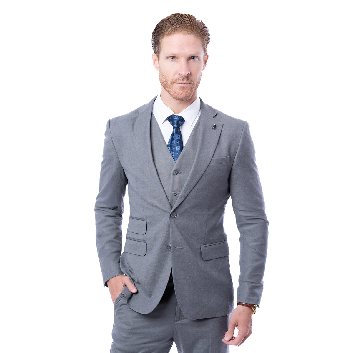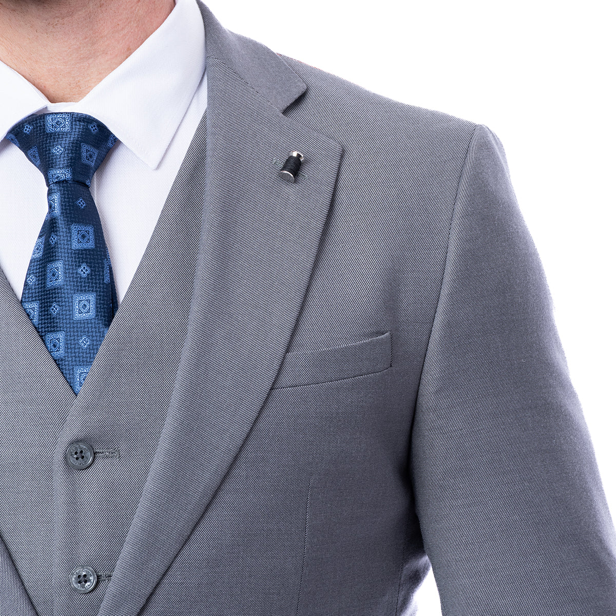 Traje Skinny Fit de color gris de diseño tectura. Conjunto de 3 piezas