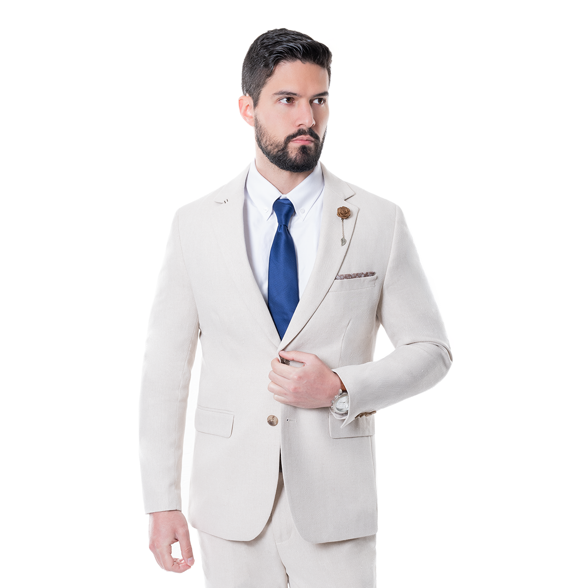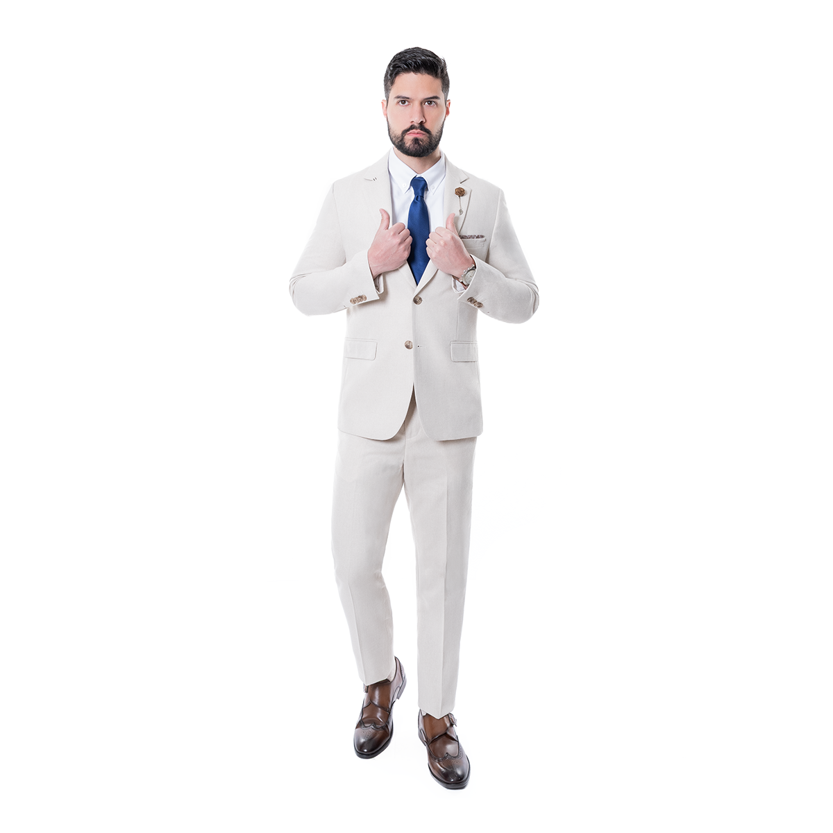 - Traje corte Slim Fit khaki con diseño de espiga. Con el corte SLIM FIT tendrás un atuendo cómodo, dándote la libertad con un estilo semi ajustado.