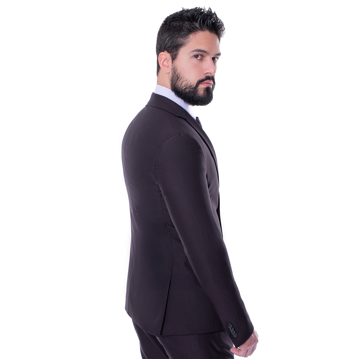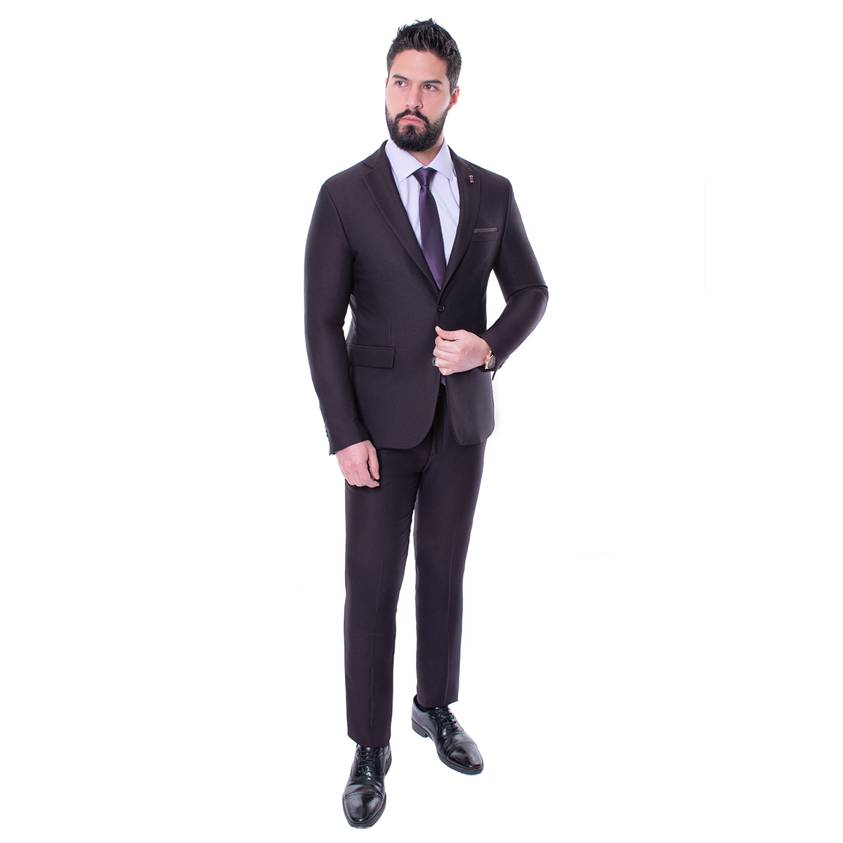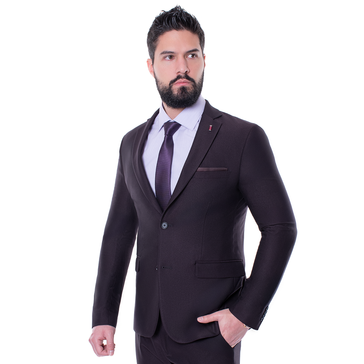 Traje de vestir para hombre en corte skinny fit, color vino tinto quemado y diseño liso. Una opción formal con líneas limpias para eventos, graduaciones y ocasiones donde necesitas verte impecable.